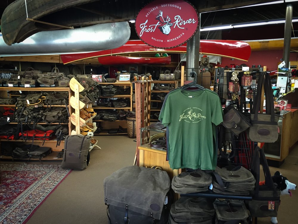 Frost River handcrafts heritage-style bags and packs at our shop in Duluth, MN. Visit our newly renovated store not only to shop our reliable softgoods, but see the workshop as well. All of our packs and bags are made right here in our shop. Visitors in on the week days can hear the sounds of production including the whirring of sewing machines and ka-chunk of the riveters. Our quality materials including waxed canvas, premium leathers and robust hardware allow us to offer lifetime guarantee - a remarkable product with a timeless look. Stop by today! We'd love to show you around.