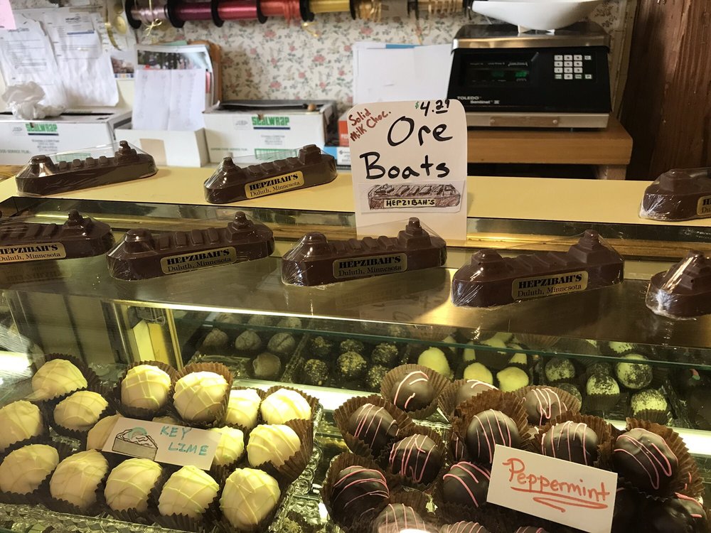 Hepzibah's Sweet Shoppe is a Duluth, MN candy shop located in Canal Park across from the shipping canal. We are known for our award-winning truffles, chocolate Ore Boats, and handmade fudge. Family-owned since 1987, Hepzibah's Sweet Shoppe also offers a unique selection of imported chocolate and treats from Europe, Australia, Finland, Great Britain, and Sweden to name just a few! With an array of treats, both beautiful and tasty, there is a decadent candy choice for everyone that stops by.