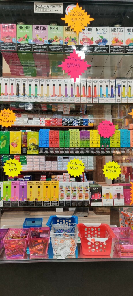 Tons to choose from!! A few more dollars then what I would usually pay for in vapes though. But they do have tons of good options!! I would stop here again!!!!