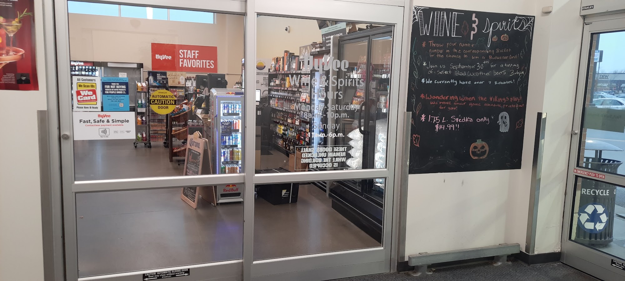 Hy-Vee Wine & Spirits is a clean, beautiful, and well-organized store offering a wide selection of beer, wine, liquor, hard seltzers, mixers, and bar accessories, including local brands and national favorites. It is described as the best place to stock up for a party or find a dinner wine. The store is inviting with wide aisles and no accessibility issues. The bakery offers delicious donuts, beautiful but expensive cakes, affordable birthday candles, and fresh artisan bread like sourdough. The floral department has gorgeous but pricey arrangements, and there is a Starbucks for convenience. However, customers note significant pricing concerns. Many report that items frequently ring up more expensive at the register than advertised, requiring correction, which some find to be a shady business practice. While employees are nice, helpful, and positive, and mistakes are always corrected in the customer's favor, this recurring issue discourages regular shopping. Prices elsewhere in the store are hit or miss; some produce is beautiful and delicious, but deli items and clothing are considered expensive. The store features many fast food and eatery options, though opinions on them vary. Overall, it is a pleasant, well-run grocery with a great selection, but customers advise verifying prices at checkout and shopping around for certain items.