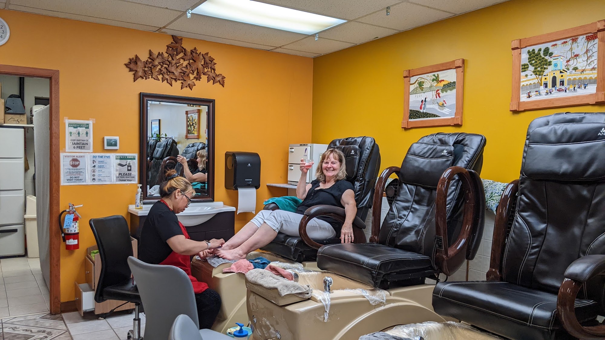 Pamper Nails offers pedicures and nail services. Customers praise the friendly and warm atmosphere, with staff like Lucky providing excellent service. The Deluxe pedicure includes a massage and warm stones, and is considered a great value. Customers appreciate the reasonable prices and the option to bring their own beverages. Pamper Nails is highly recommended for a great first-time pedicure experience.