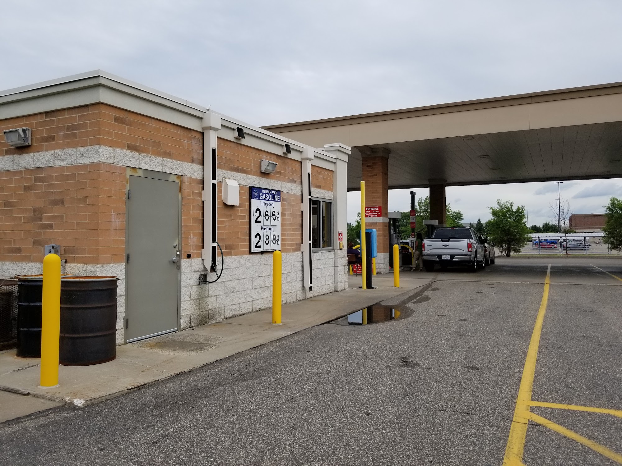 Cheapest gas around at $2.99 a gallon . I also got 36 cans of Pepsi for $11.00 and a box of 40 cheese it chip packets for $8.00. And a couple things for my kids. Really decent place but you have to have a membership.