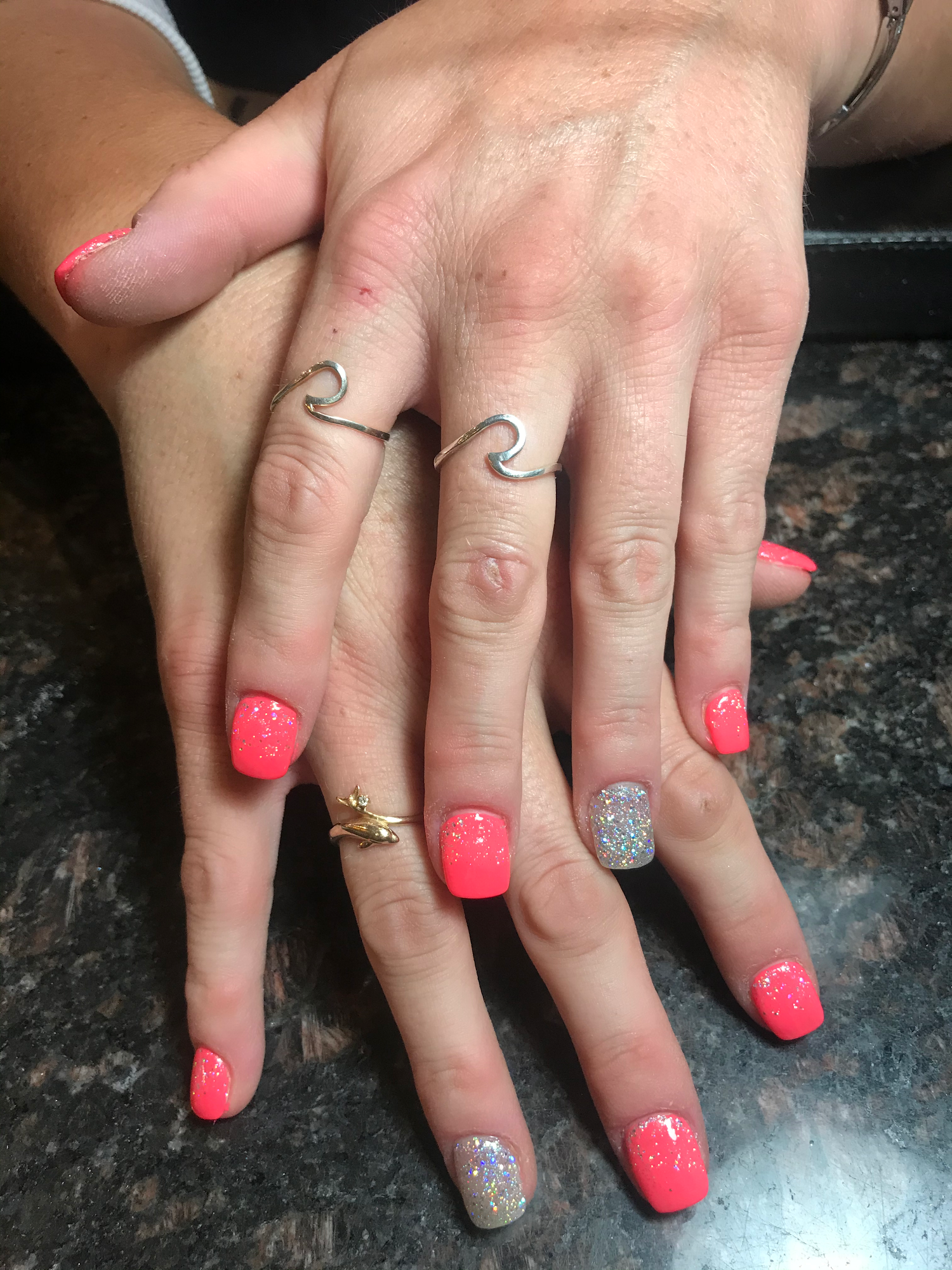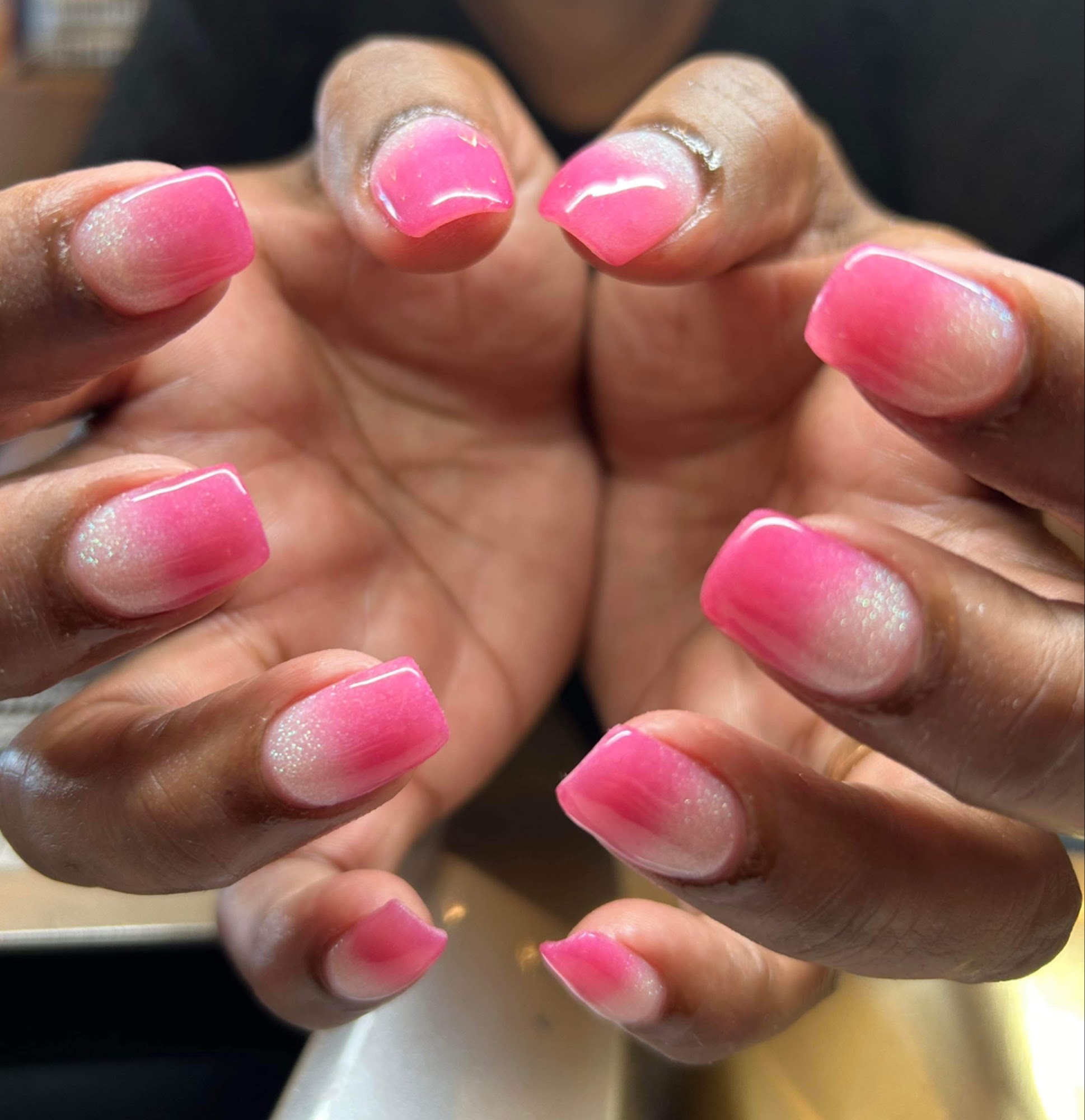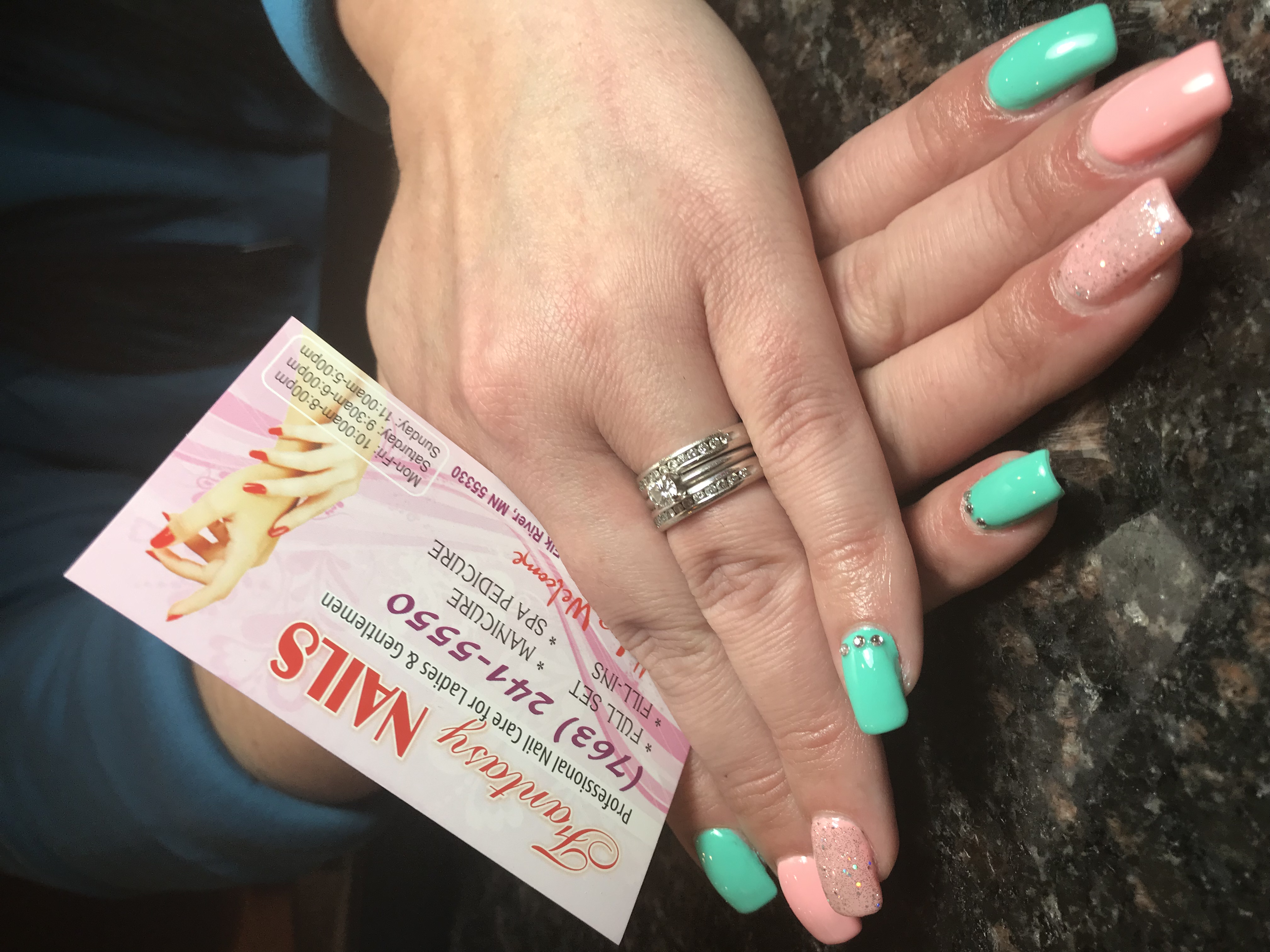 I couldn't be happier with my nail service today. I was a walk-in with a photo for color reference and shape. I think she nailed it..😉