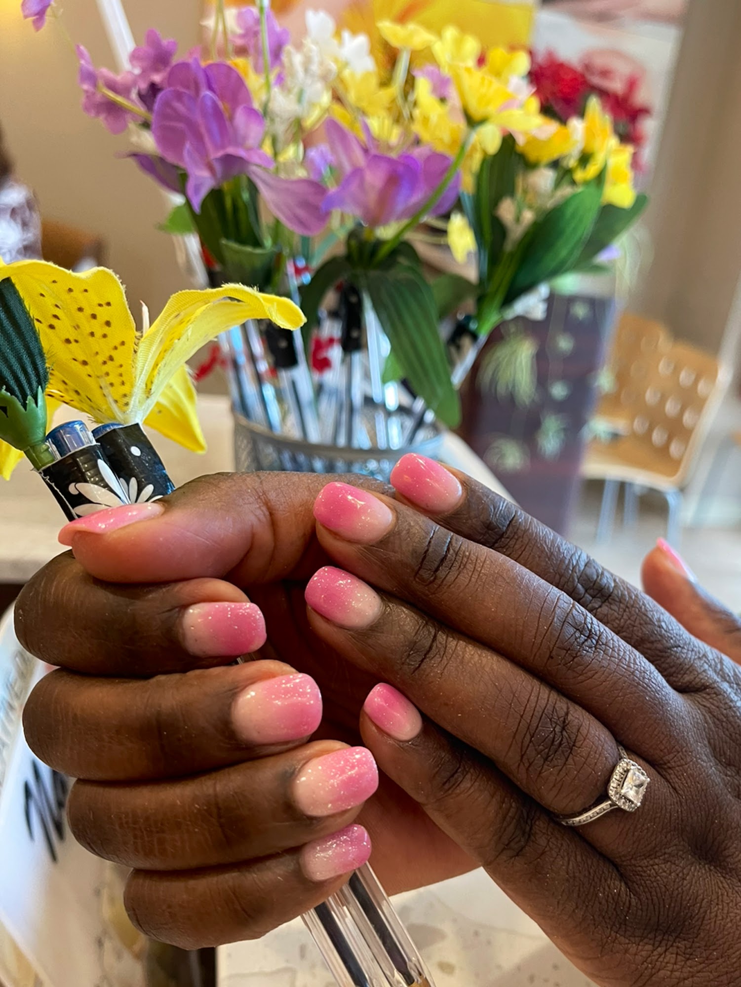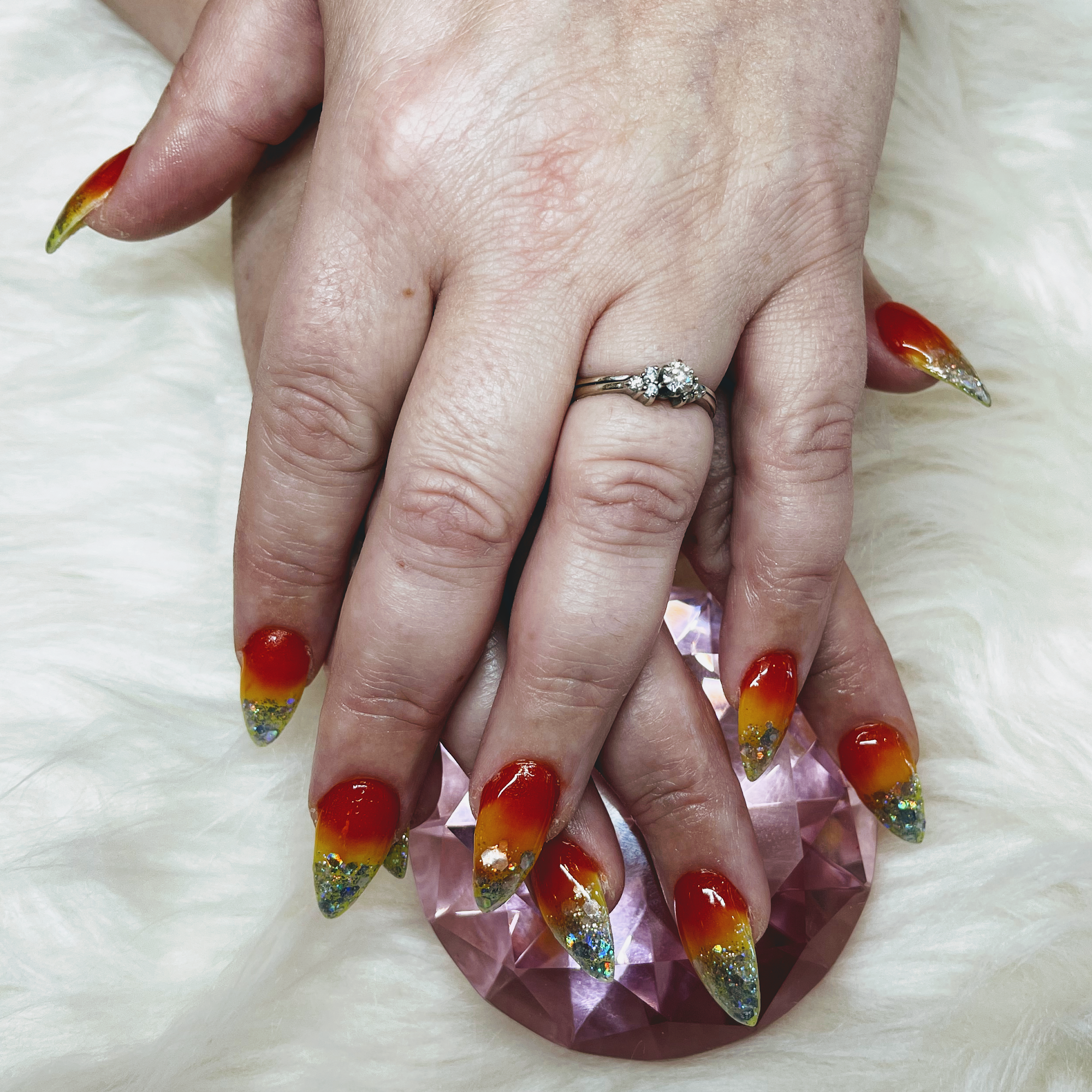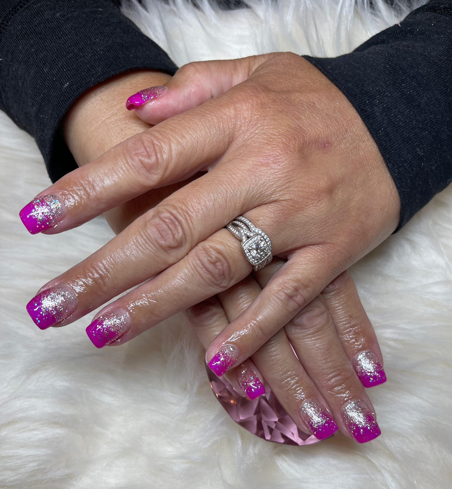 I couldn't be happier with my nail service today. I was a walk-in with a photo for color reference and shape. I think she nailed it..😉