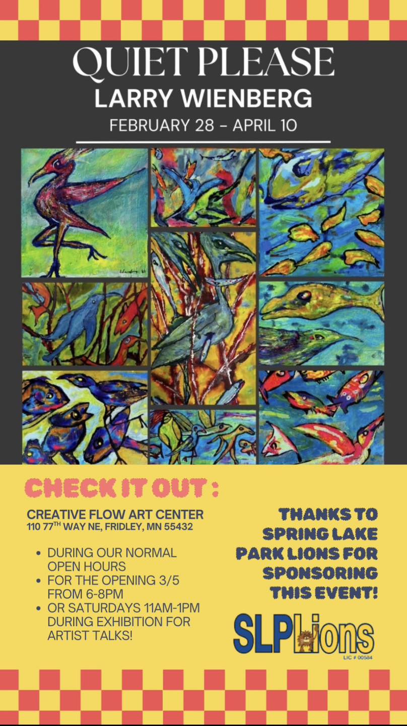 Creative Flow Art Center is a sister-location to Rumriver Art Center in Anoka. Creative Flow Art Center’s mission is to bring people of all ages and abilities together to create a strong and inclusive art community. CFAC will make it easy and comfortable for people to be creative. The space, tools, and instruction will nurture an adaptive environment. Take a class or drop-in to see gallery exhibits or hang out!