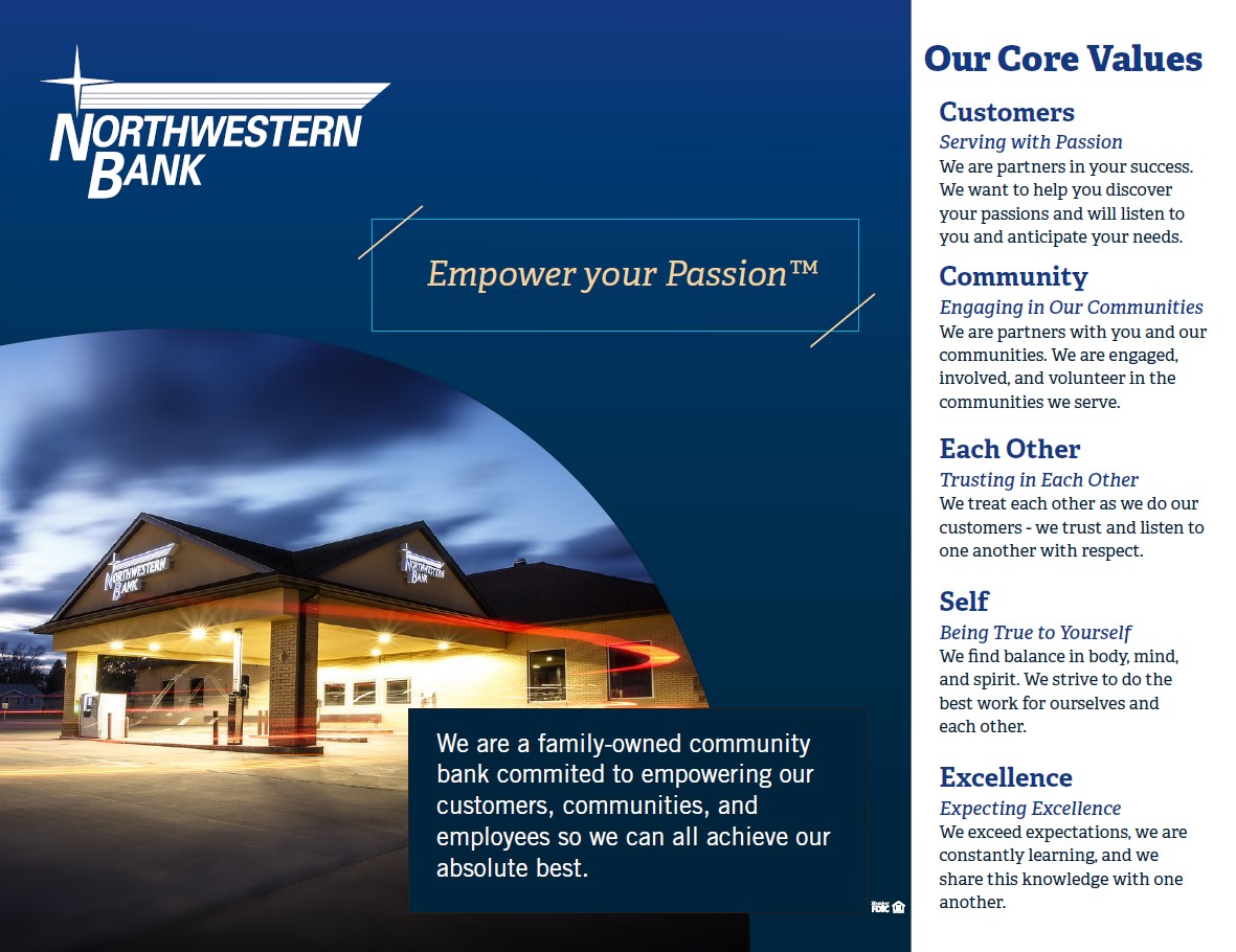 Northwestern Bank is a family-owned community bank committed to empowering our customers, communities, and employees so we can all achieve our absolute best. We offer banking and mortgage services for individuals, businesses, and our agricultural community. With locations in Fergus Falls, Detroit Lakes, Moorhead, Dilworth, Hendrum, and Ulen, we are ready to serve our local communities and help you with your banking needs.