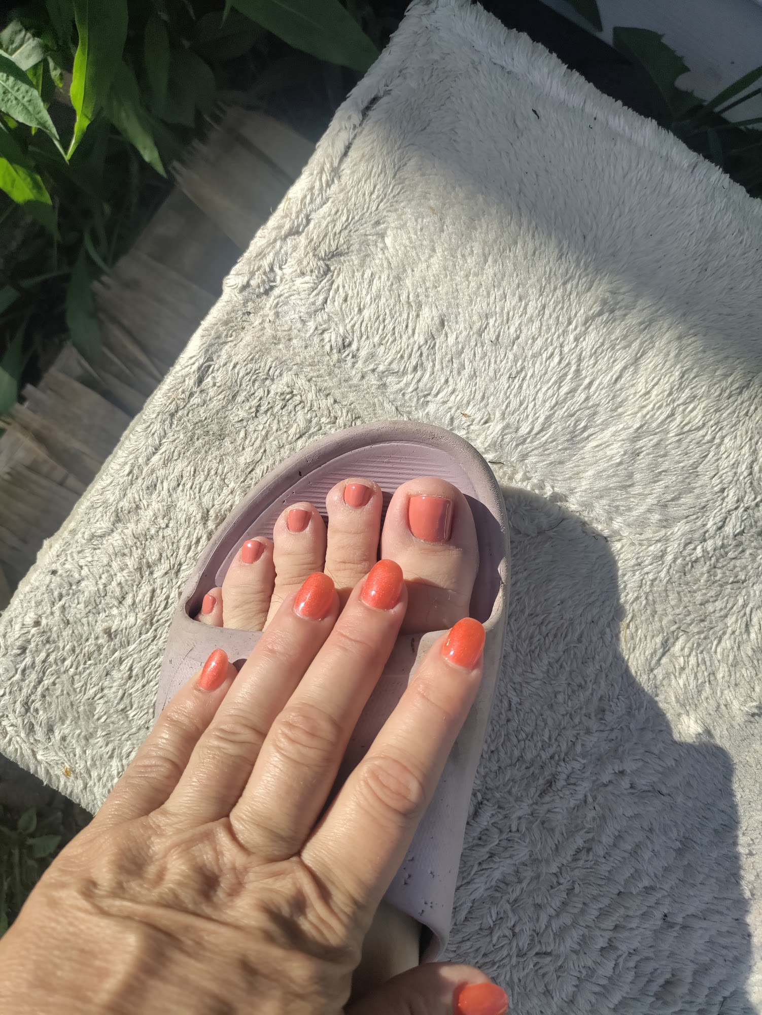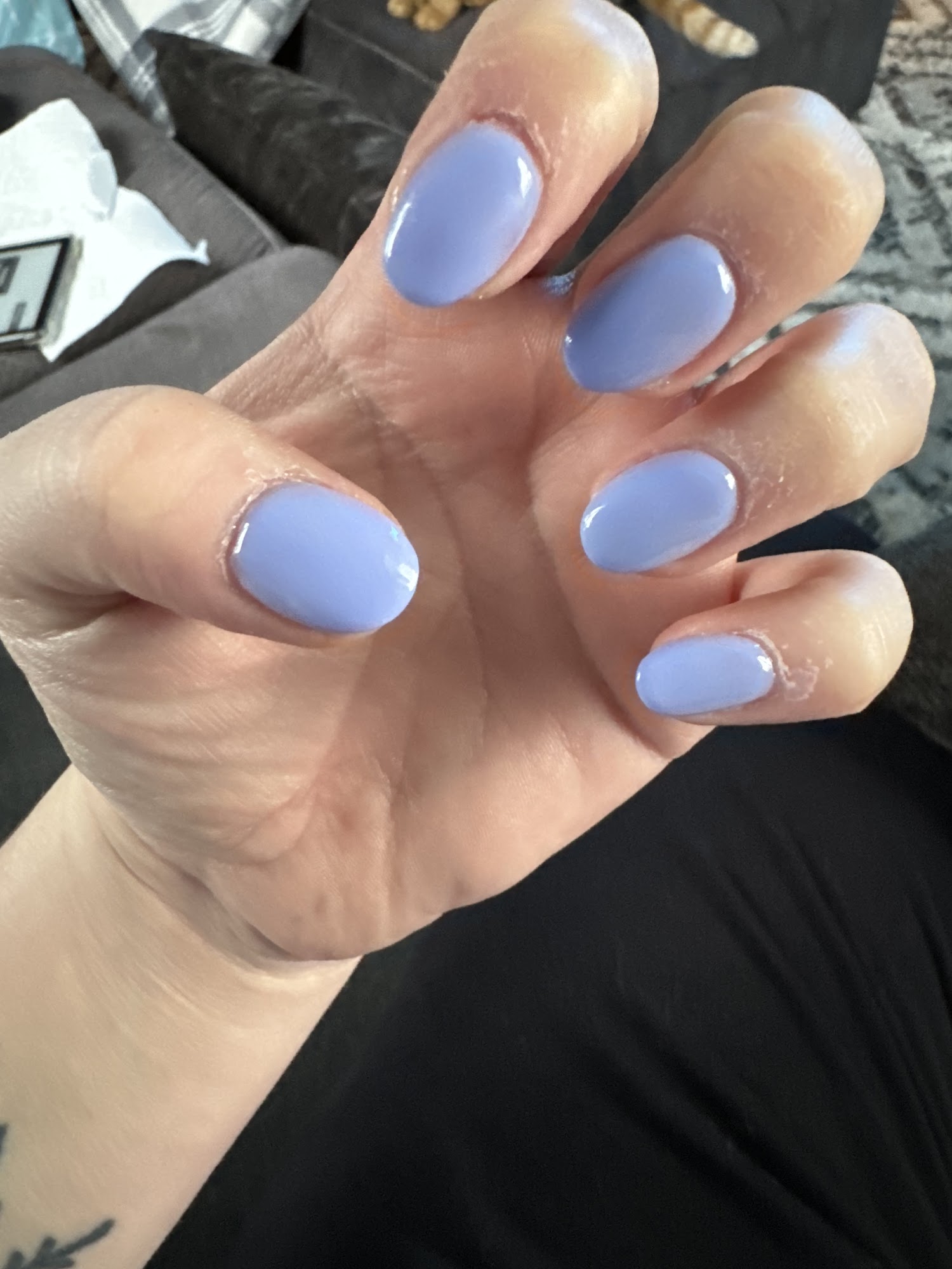 S'mores chocolate brown with a lavender-blue micro glitter, jade green with gold and silver glitter. My nail tech was kind and my jade green pedi turned out fabulous also.