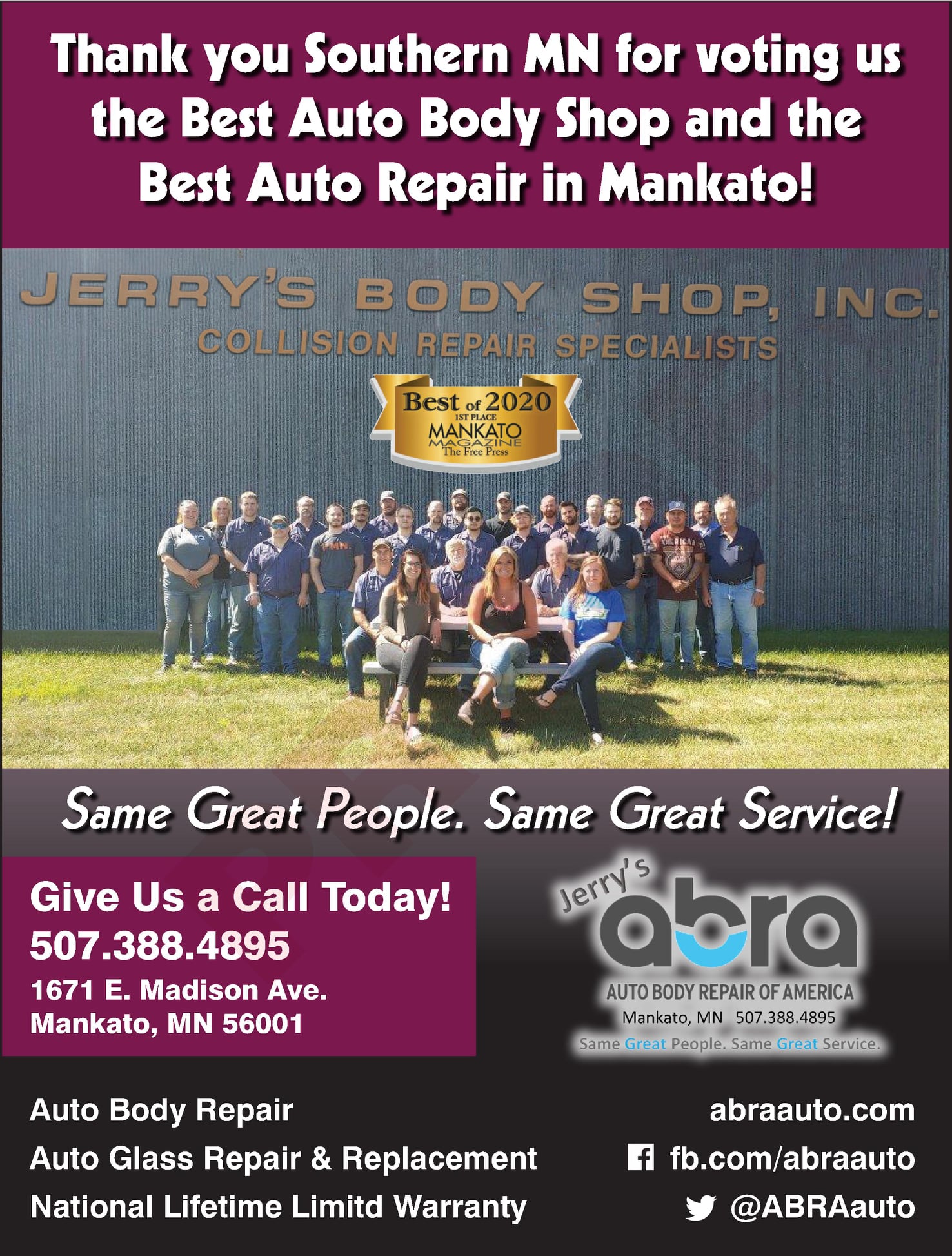 ABRA Auto Body Mankato is a highly regarded auto body repair shop in Minnesota known for its friendly and professional staff. They provide a range of services, including collision repair, windshield and auto glass repair, paintless dent repair, and conventional vehicle repair. Customers appreciate the quick and efficient service, with many noting how well they were kept informed during the repair process. The shop has received praise for restoring vehicles to like-new condition, and clients often comment on the cleanliness and quality of the work done. Overall, ABRA Auto Body Mankato delivers excellent service, making it a reliable choice for auto body repairs.