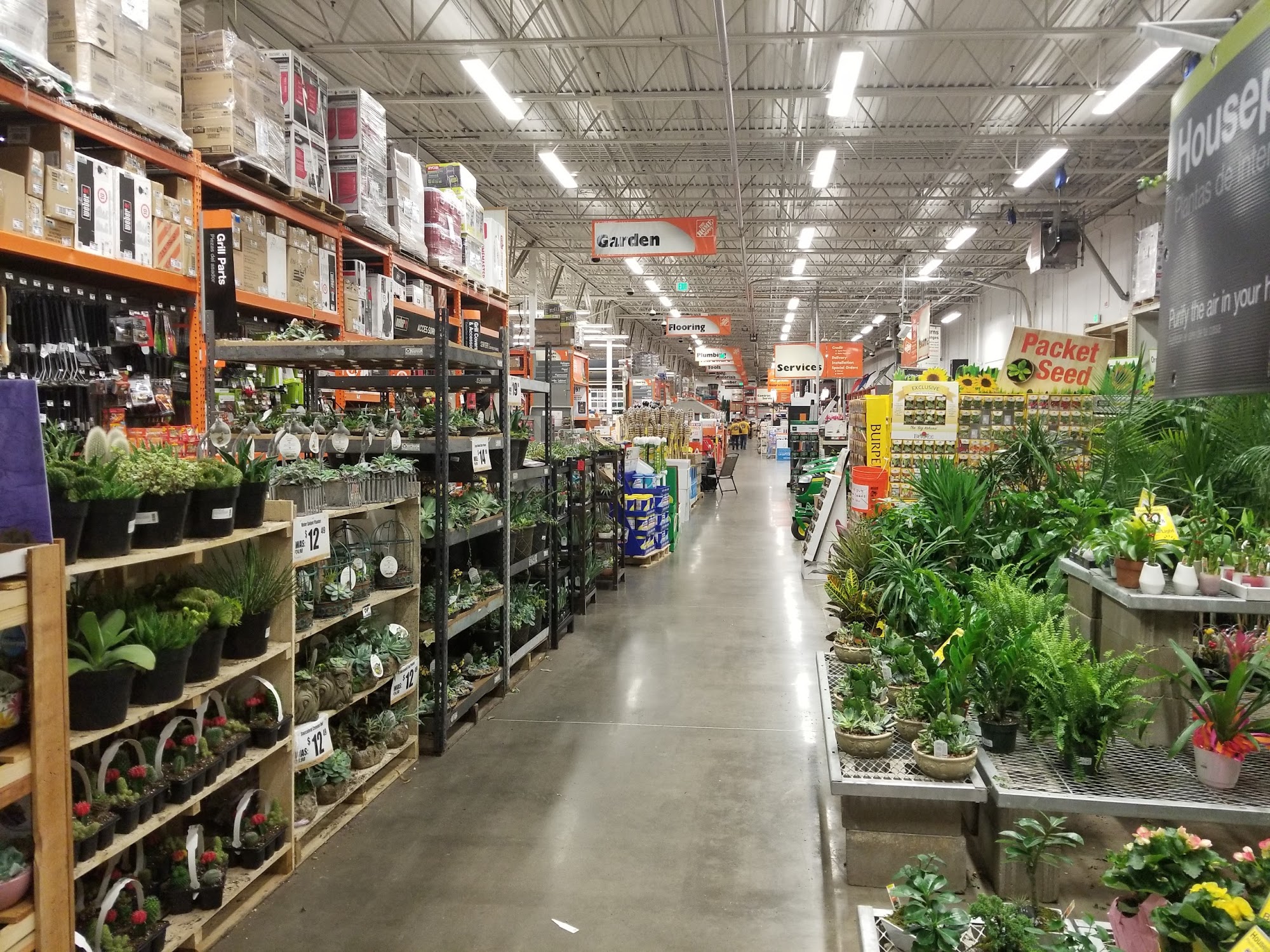 The Home Depot is a store for home improvement and gardening projects. It offers a wide variety of tools, appliances, outdoor furniture, building materials, and gardening supplies. Customers report that the merchandise is of better quality compared to other stores. The store has a beautiful selection of plants and vegetables. People can save big money when shopping there. The customer service is often highlighted as friendly, patient, helpful, and knowledgeable. Employees provide expert advice and support, with specific mentions of excellent service in the paint and key-making departments. The store offers conveniences like better parking and an area for curbside pickup. Some cons include narrow aisles that can be crowded with merchandise. The in-store selection is sometimes dwarfed by the online offerings, which can require visiting multiple stores for hands-on comparison. Occasionally, it takes talking to more than one employee to locate items. Overall, it is a place where customers find everything they need under one roof for their projects.