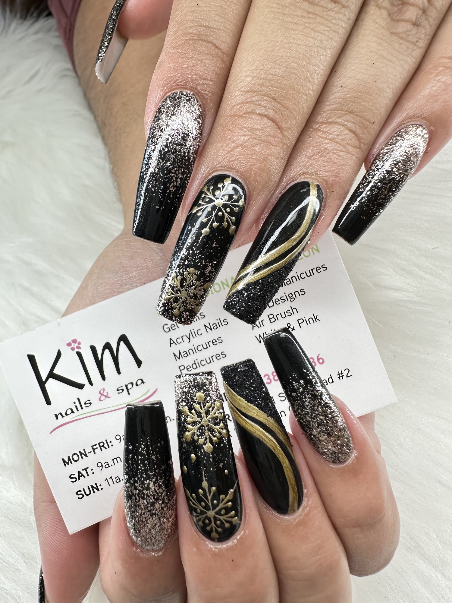 Very nice love my nails I was told that my design was too hard but that’s ok and what I picked turned out great also very cheep and I will be coming back