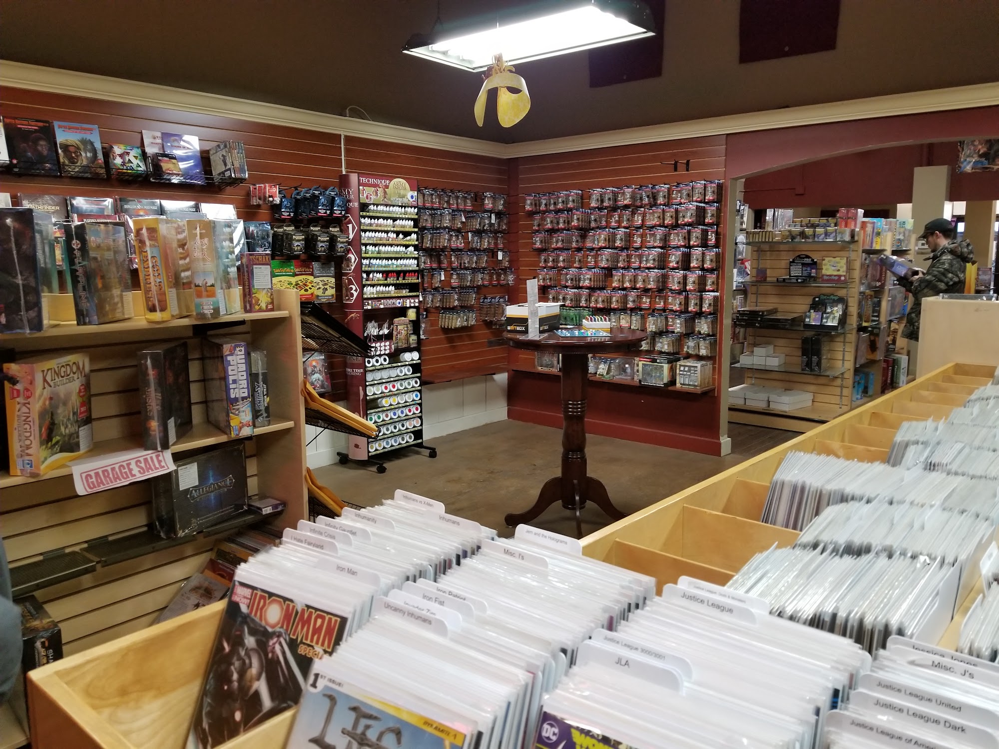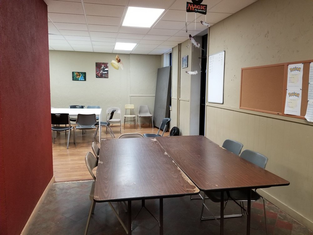 Fair selection for a smaller, rural city. Decent atmosphere, large play area, with a focus on mineratures and table top games.