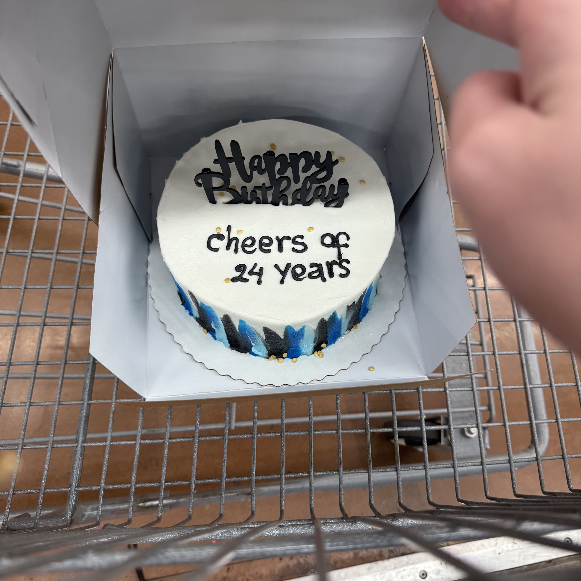 The cake looks good but I asked for the writing to say “Cheers “to” 24 years. Not “Of”. Also- Nobody was at the bakery counter even when I called the bakery phone. I had to look for an employee around the store for help.