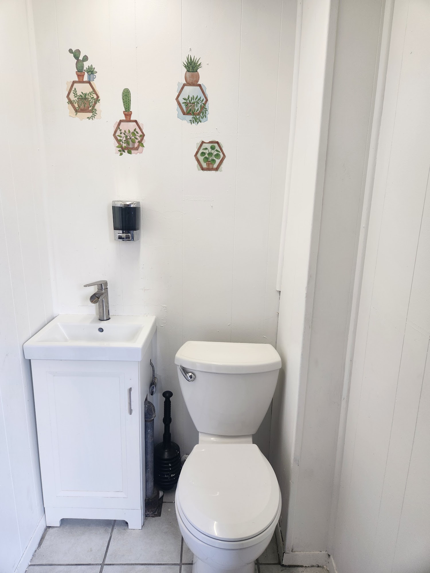 Small but a great place to wash and dry.You'd have to hold it or go to a nearby gas station for restrooms.?