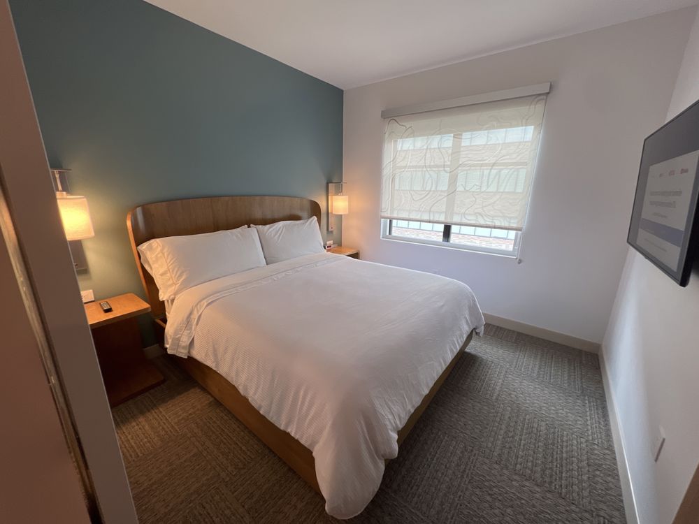 Showers could use bars, but the room was spacious and clean. I could stay in bed all day. The bed was so comfortable. Breakfast was delicious, and the hotel was very secure.Walkability: Food within walking distance. Light rail is also very close.