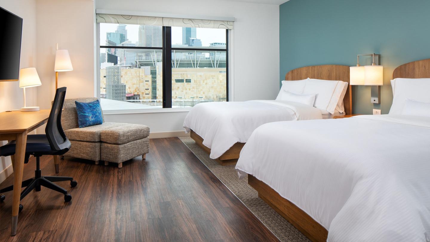 Element Minneapolis Downtown is a modern and stylish hotel located in the heart of the city. The hotel offers spacious and clean rooms with comfortable beds, and many rooms feature full kitchens, working desks, and cozy couches, providing a home-away-from-home feel. The hotel's amenities include a delicious continental breakfast with hot cereal, eggs, and freshly made egg corn and vegetable fritters, as well as avocado tacos. Guests can also enjoy a hot chocolate bar in the lobby, complete with mini marshmallows. The hotel's location is highly convenient, situated within walking distance to various restaurants and bars, as well as the nearby Target Field and Fillmore music venue. The hotel is also adjacent to the light rail, making it easy for guests to explore the city. The staff at Element Minneapolis Downtown is renowned for their exceptional customer service, going above and beyond to assist guests, whether it's helping with transportation or providing a cart to move equipment. The hotel's contemporary, secure, and peaceful atmosphere makes it a favorite among both business and leisure travelers.