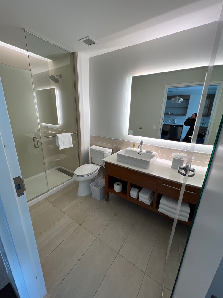 Beautiful, very stylish modern hotel. Scandinavian design. It has many desirable amenities & is exceptionally sleek & clean. Everything looks brand new. The staff has been welcoming and extremely helpful to us. Rooms are surprisingly large; our has a full kitchen. Very contemporary, secure, & peaceful inside. Our new favorite!