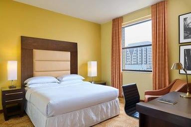 The Emery, Autograph Collection is an excellent hotel in the heart of Minneapolis, perfect for seeing a Vikings or Twins game. The hotel is amazing, housed in a beautiful historic bank building with marble columns and wonderful architectural design. The rooms are wonderful and perfect, including amenities like a fridge and coffee maker. The bar and restaurant are fantastic, offering good food and cocktails, and the Spyhouse cafe located in the same area is great for coffee. The staff is amazing and provides exemplary, seamless service. The hotel is pet friendly and has easy access to the metro train. A downside is the location without a lot of restaurants nearby, and parking might be a bit tricky. It is a great place for a nice evening gathering and is a highly recommended place to stay.