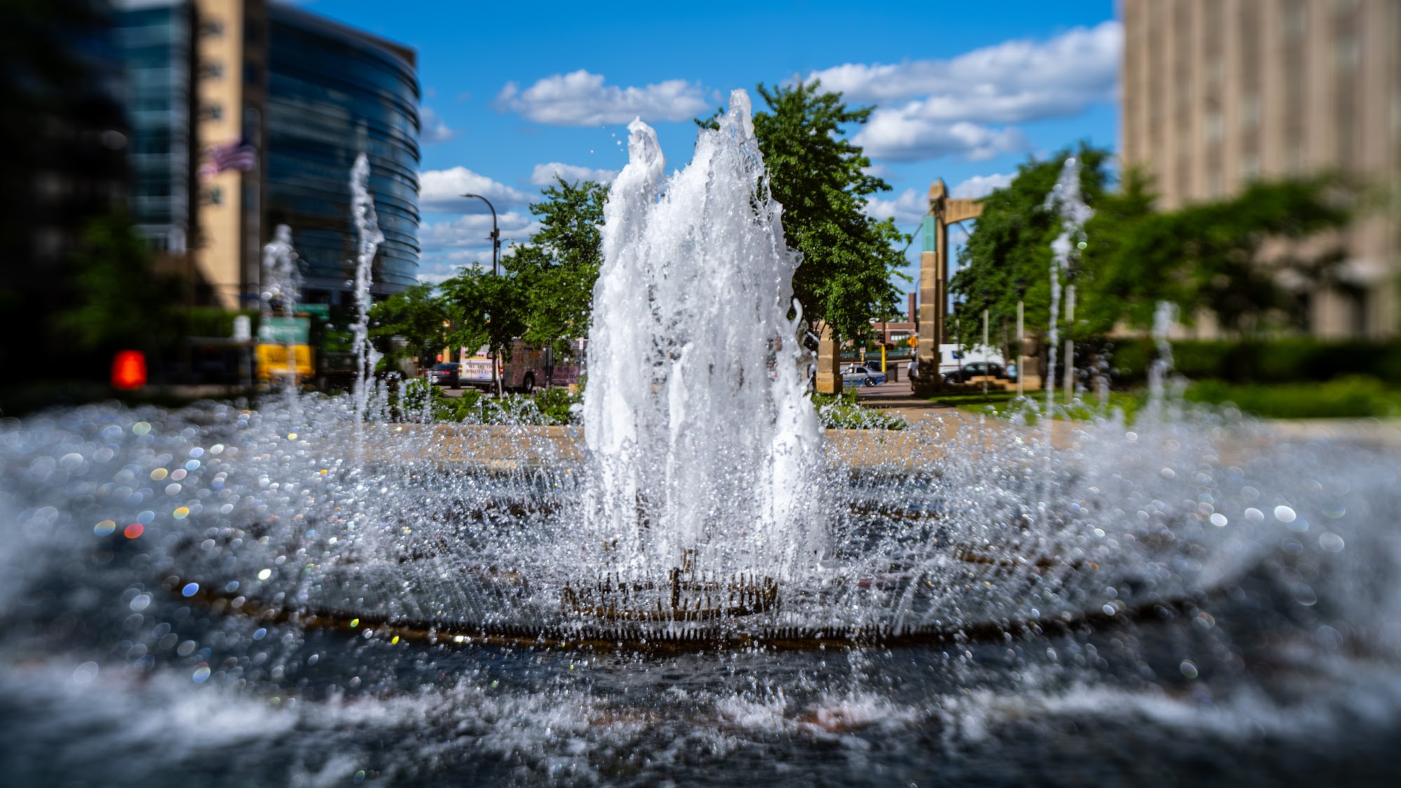 Great oasis in the city with a beautiful fountain, especially when lit up at night