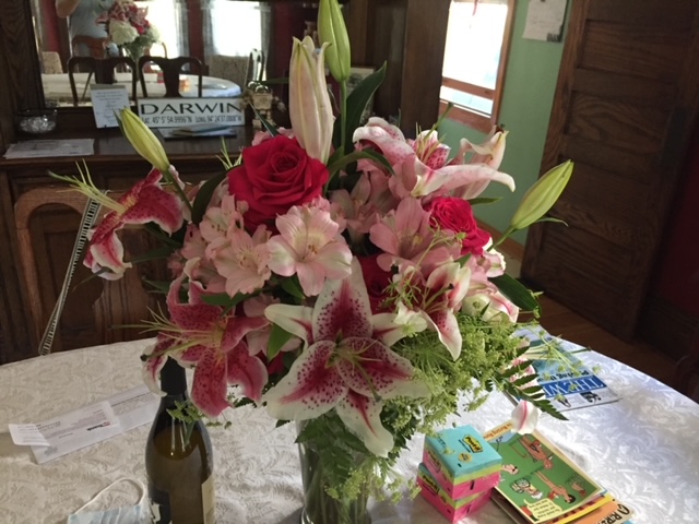 Darwin Lee made a floral replica of daughter, Zoe's, wedding bouquet and delivered it on her 12th wedding anniversary. Her hubby in Tampa sent him photos while taking care of their kids. She was up for her high school reunion. It was such fun for us all!