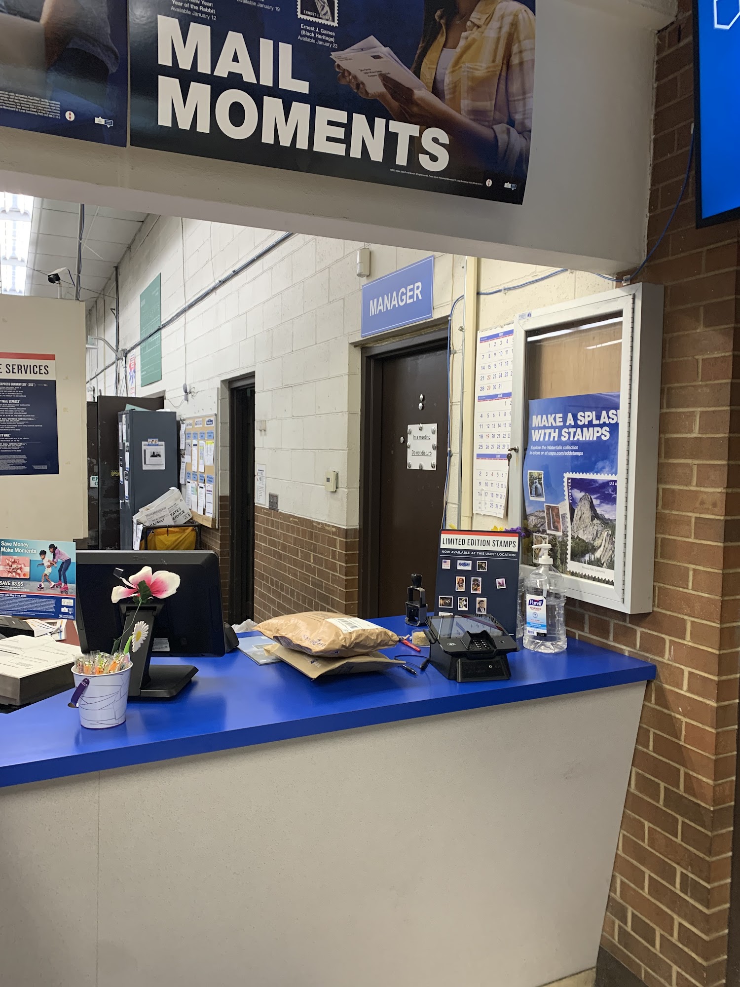 Dont go here! They park all of the USPS trucks in the customer lot leaving no spaces free and are not friendly at all
