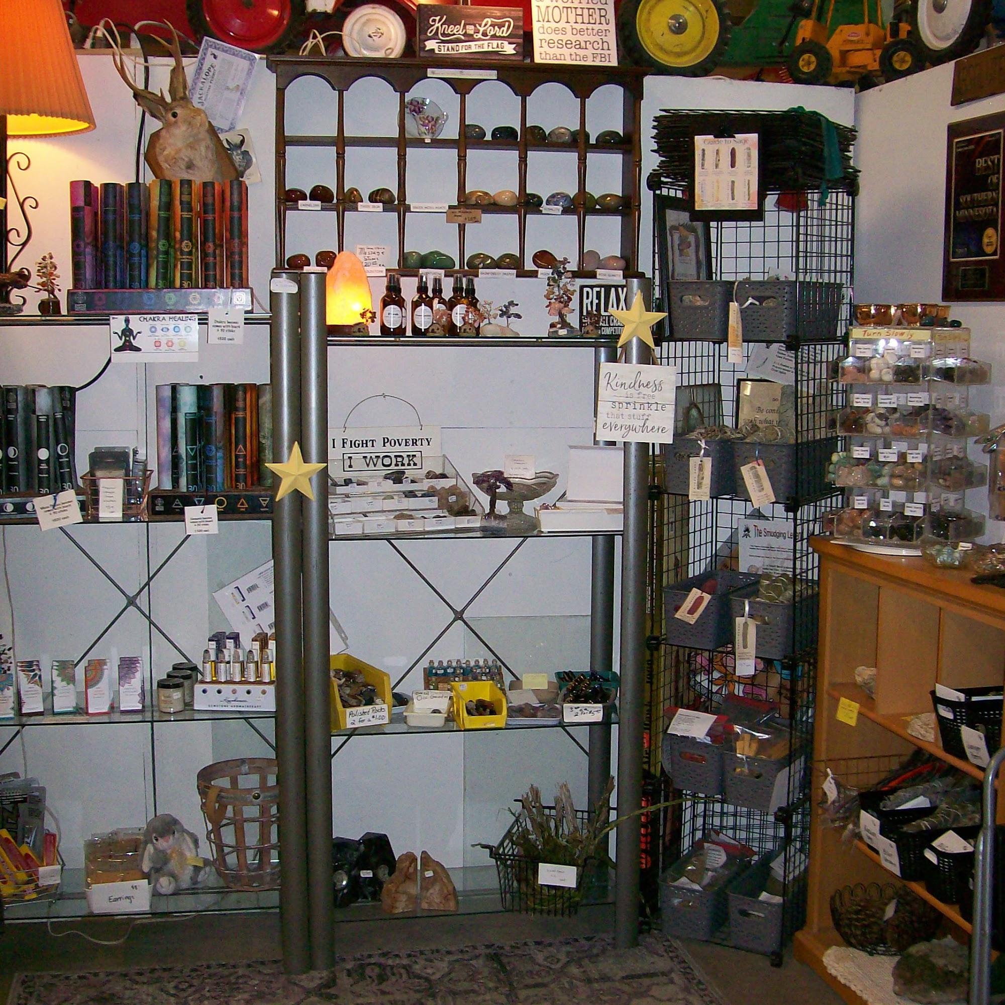 Amazing place to spend so much time. I found some amazing vintage vinyl and some beautiful stones I could not live without. The staff is super kind and willing to just chat too. Go in and check them out.