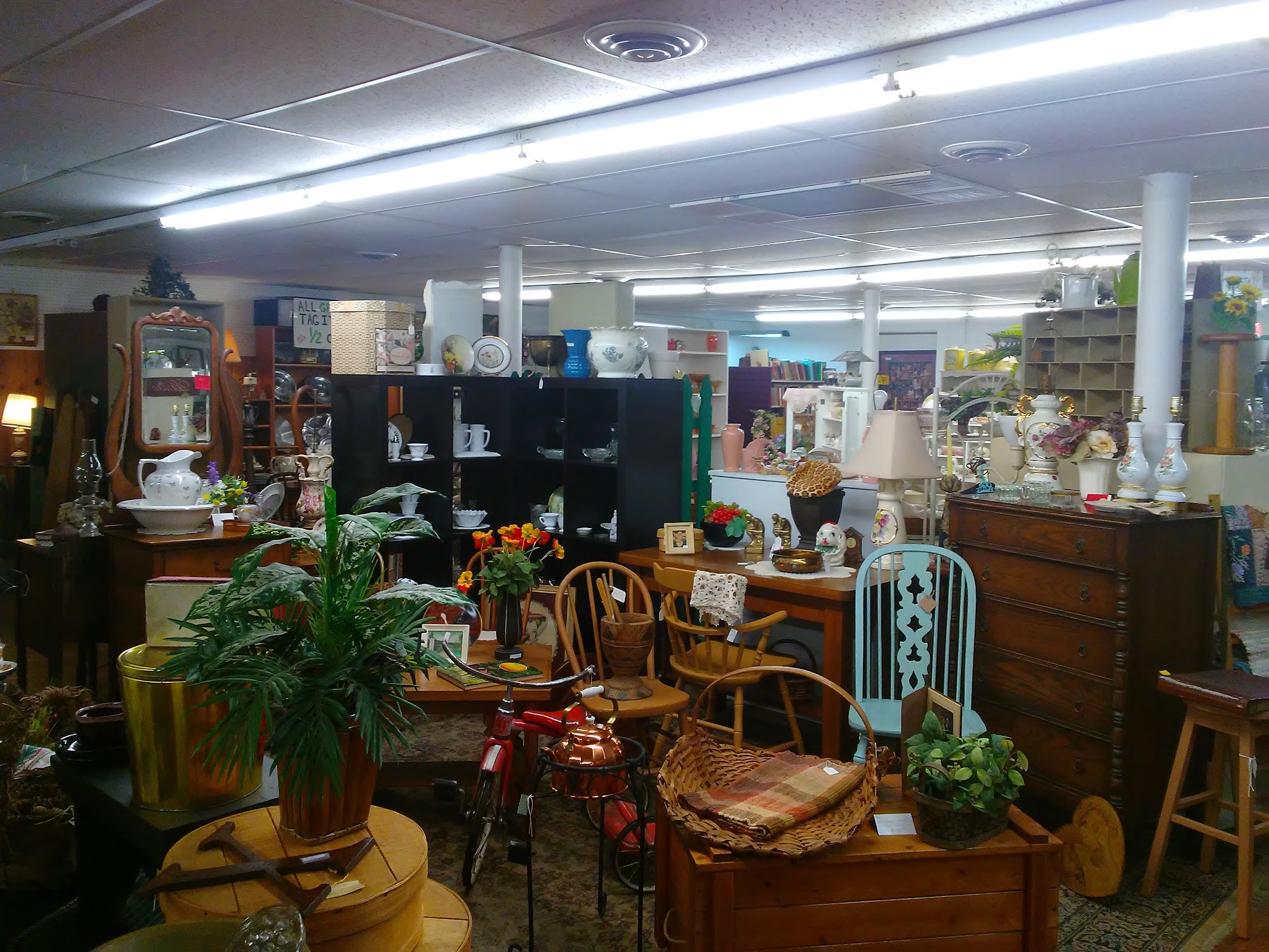 Varied selection of antiques skillfully displayed. Noted large selection of china and glassware when walking through.