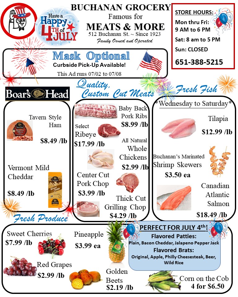 Buchanan Grocery, owned and operated by the Carlson family since 1923, is a beloved neighborhood store in Red Wing. Despite its small size, it offers a wide selection of quality products, including high-quality meat, fresh fish, frozen seafood, groceries, local Minnesota and Wisconsin products, fresh produce, dairy, and gourmet cheeses. The store is known for its friendly and personalized service, where staff often go above and beyond to assist customers. The meat department receives high praise, with a skilled butcher and excellent customer service, making it a favorite among shoppers. Customers appreciate the homemade deli salads, like the legendary potato salad, and the variety of smoked meats from Mike's Butcher Shop. The store also features Boar's Head deli meats and cheeses sliced fresh upon request. While not the cheapest option, Buchanan Grocery is valued for its high-quality selection, especially local goods such as CannonBelles cheese and Lake City strawberries. Shoppers often mention the welcoming atmosphere, with staff who are incredibly nice and attentive, creating a sense of community. Many customers have been returning for years, trusting the store for quality meats, great service, and a friendly shopping experience. Overall, Buchanan Grocery is a small-town gem that combines tradition, quality, and friendly service.