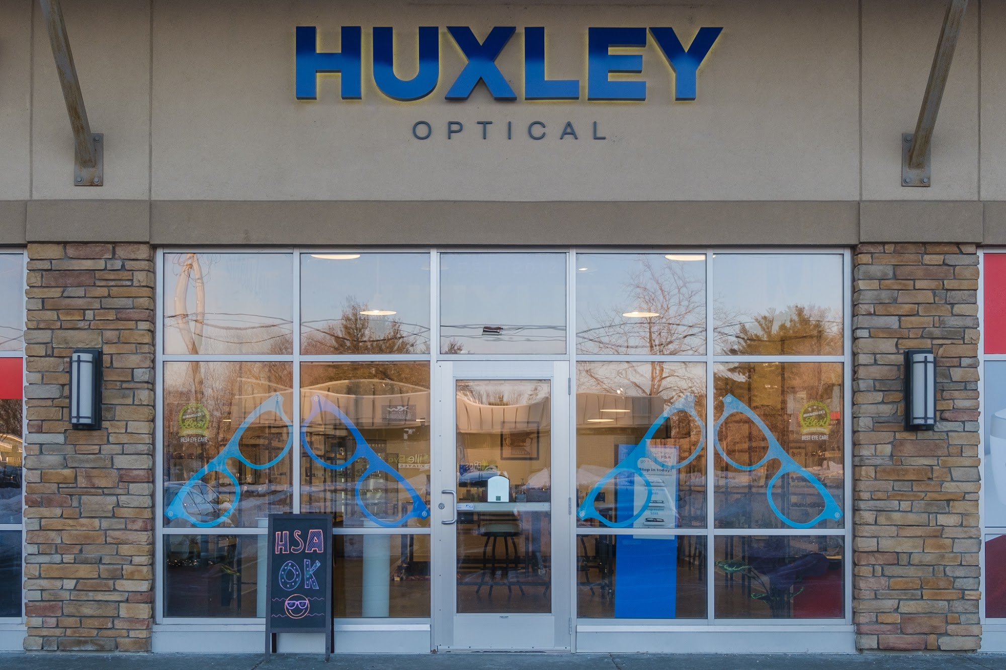 Huxley Optical offers a unique and modern selection of eyewear, including stylish wooden frames, with constantly changing inventory to keep up with the latest trends. The business is committed to providing simple, fair, and honest pricing, with single vision glasses starting at $149 and progressive bifocals at $249. Customers enjoy a friendly and attentive service experience, often receiving personalized assistance from staff members who help find the perfect pair of glasses or sunglasses. The team is known for their quick and efficient service, often completing glasses adjustments or lens replacements in just a short time. Huxley Optical also provides a 45-day money-back guarantee and a one-year warranty, ensuring customer satisfaction and peace of mind. They offer in-store frame repairs and replacements at no cost if frames are broken. The locally owned business prides itself on exceptional customer service, with staff who go above and beyond, offering refreshments and making clients feel welcome. Overall, Huxley Optical is praised for its friendly staff, great selection, and dedication to providing excellent, personalized eyewear services.