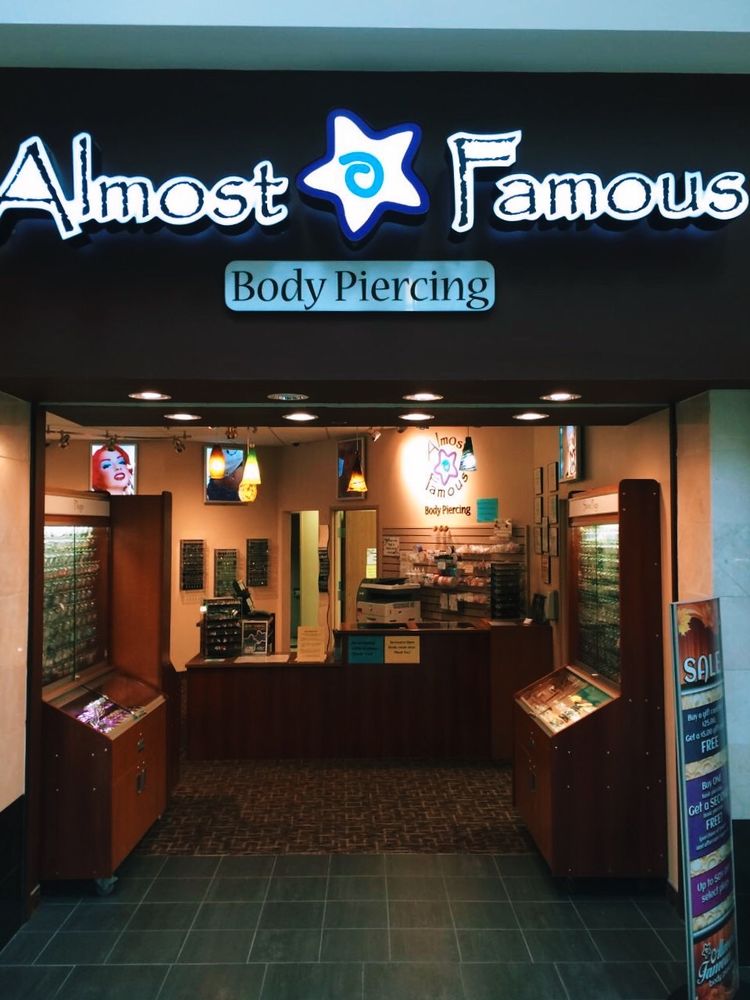 Almost Famous Body Piercing St. Cloud is your first stop for punctuating your personal style. As one of the most reputable body piercing shops in Minnesota, our piercing shop in St. Cloud, MN is located on W Division St., and we are here to help you meet all of your piercing body modification needs! We offer MANY different kinds of piercings, including earlobes, industrial, tongue, exotics, nipple, ear cartilage (includes tragus, anti-tragus, rook, and all other cartilage ear piercings), eyebrow, lip, navel, nostril, labret, Monroe, vertical labret, and more! Almost Famous Body Piercing is located in Crossroads Center and is dedicated to upholding the highest standards, offering unmatched quality and providing outstanding customer service.