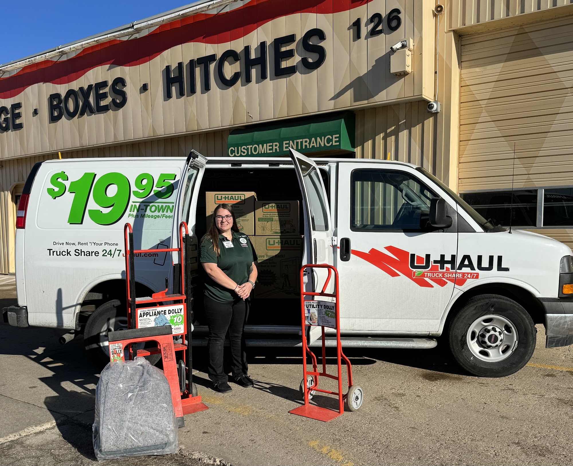 I arrived at the last minute due to scheduling issues . The gentleman that helped me out seems like he was having a bad day. Despite this, He still made sure that SAFETY was a priority and that the tow dolly was hooked up correctly and lights functioned before letting me leave.