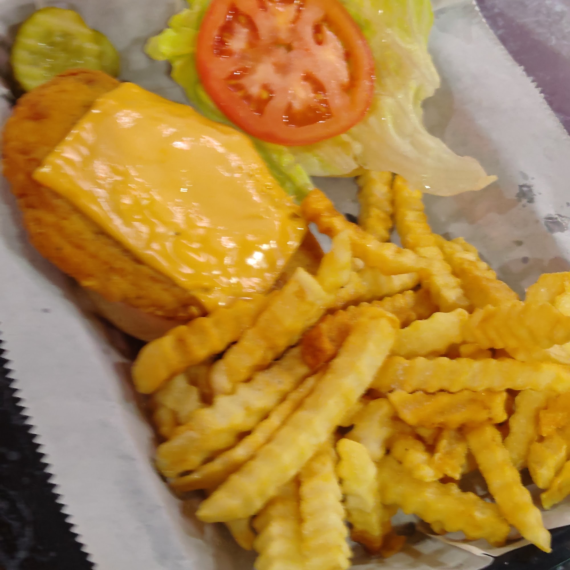 Crispy chicken with cheese was good. Fries fresh out of the frier.