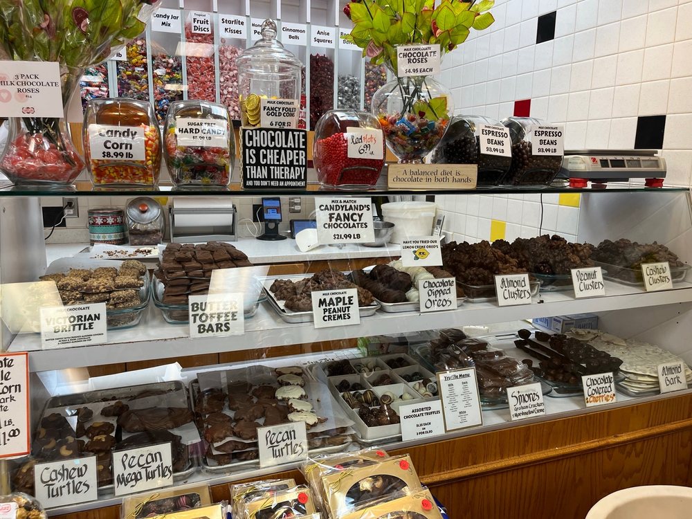 Candyland in Stillwater is a favorite shop for fresh and delicious popcorn and candy. Customers say you cannot get fresher, more flavorful popcorn anywhere, with the Chicago mix being the best as a perfect combo of regular, cheese, and caramel popcorn. They make excellent chocolates and offer treats like chocolate-dipped potato chips. The staff always seems to enjoy their job and the customers, and people are always greeted with a smile. Customers are always friendly, making it a pleasure to shop there. Parking includes shared spaces and street parking. A stop for popcorn and candy is highly recommended when visiting Stillwater.