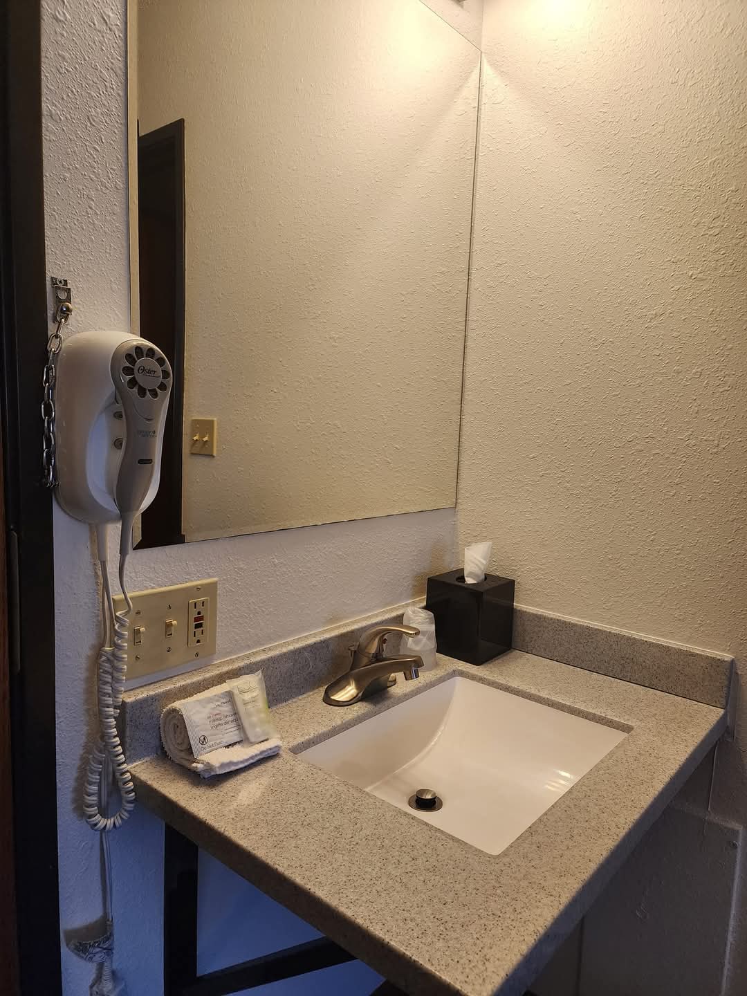 The room was supper clean. The lady at the desk was supper nice and even gave us some laundry soap so we could wash our clothes since we didn’t have any with. The price was great as well. The room was just the right temp when we got into it. We don’t really have much to complain about. Supper comfortable beds.