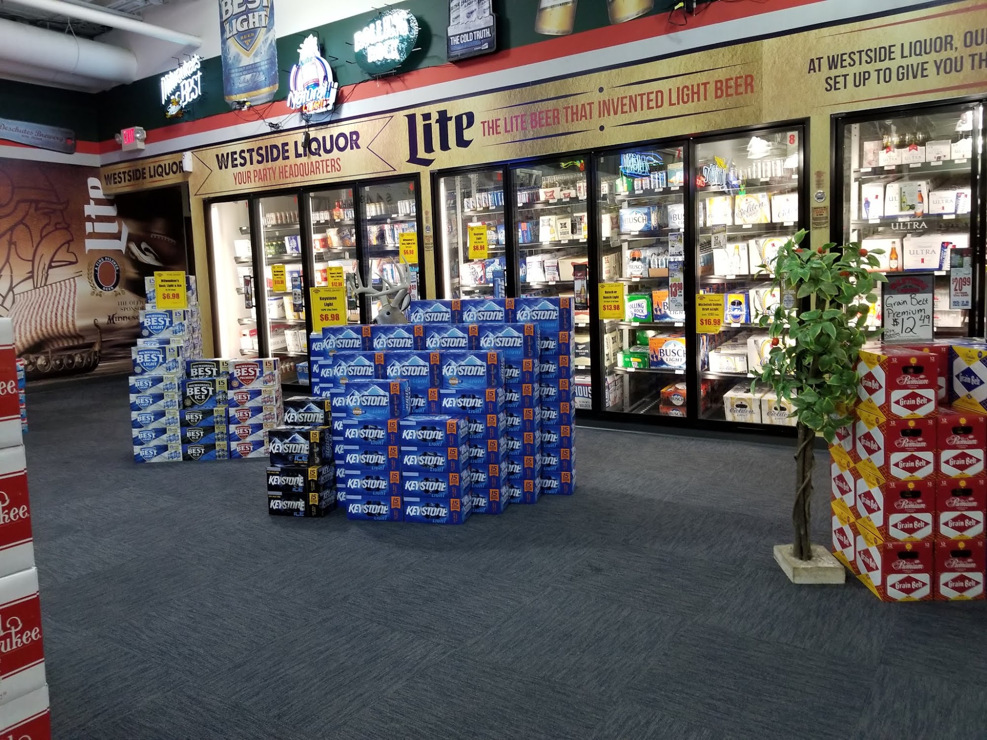 Westside Liquor Store is a popular and friendly business in Kandiyohi County known for its great selection of beverages. Customers appreciate the variety, especially the rotating "build your own six pack" options that feature options from around the Midwest. The staff is consistently described as helpful, friendly, and engaging, making shoppers feel welcomed and important. Many customers mention that if the store doesn't have what they're looking for, staff are happy to order it for them. Visitors also enjoy supporting local and nearby craft beers. The store's organized layout with labeled sections makes shopping easy, and longtime customers note they have never had a negative experience. Overall, Westside Liquor Store is considered a go-to place for those seeking a wide selection, helpful staff, and a welcoming atmosphere.