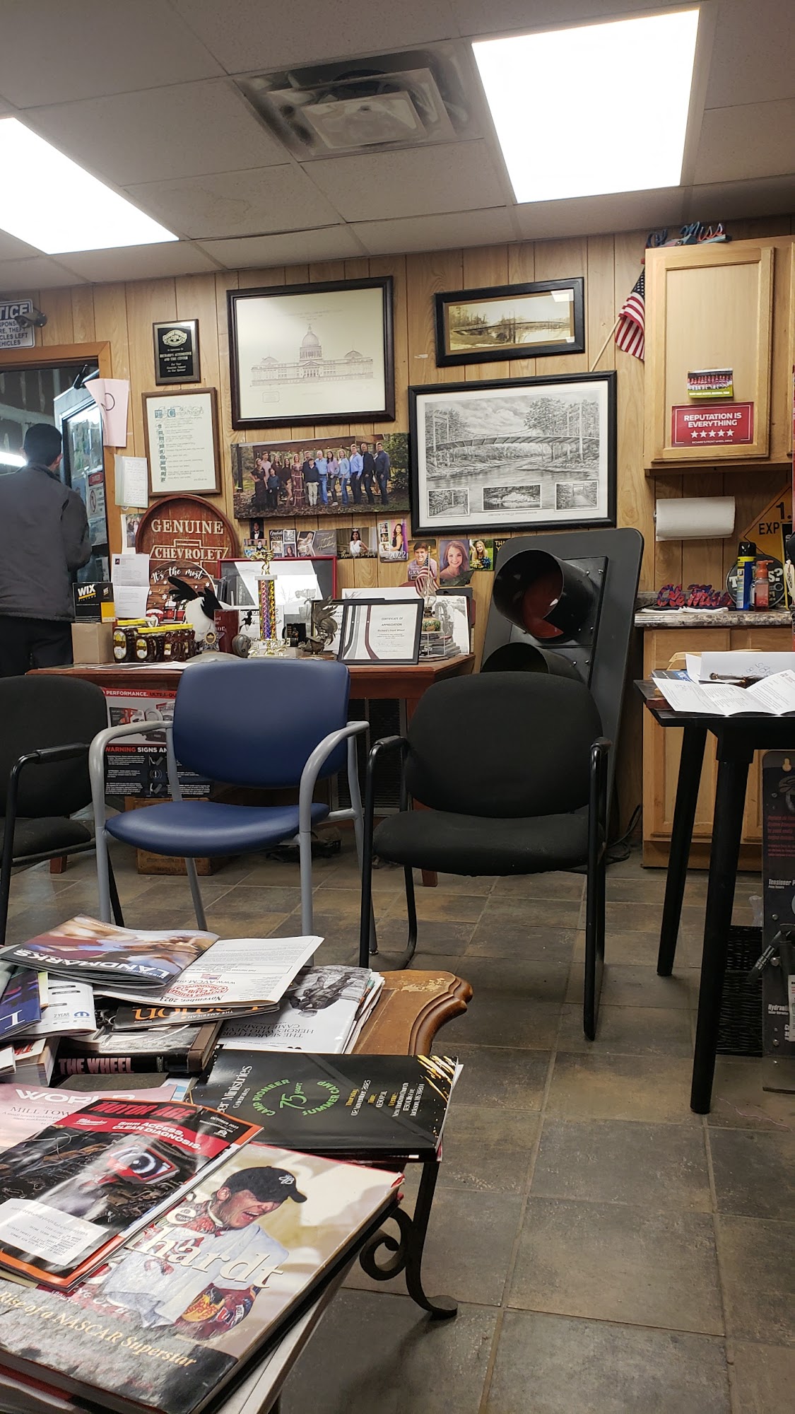 Great atmosphere! Got here before 8 and was offered coffee and listened to food conversation while truck being checked to insure they work done was holding up good. Quality, trustworthy, good people working here!