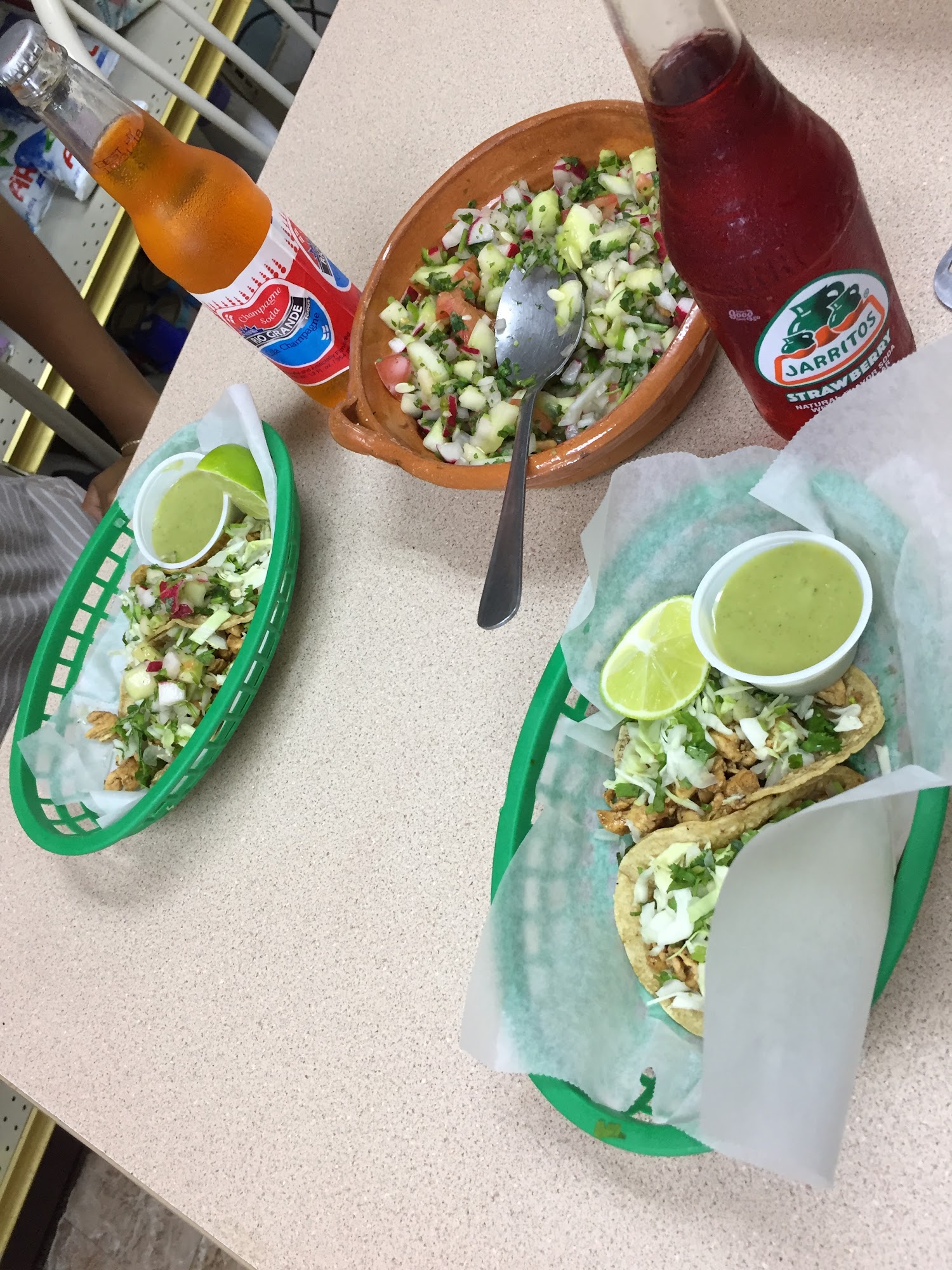 Super good food in a small market with seating in the back. My husband loved their al pastor burrito and I had menudo and tacos. They were excellent.