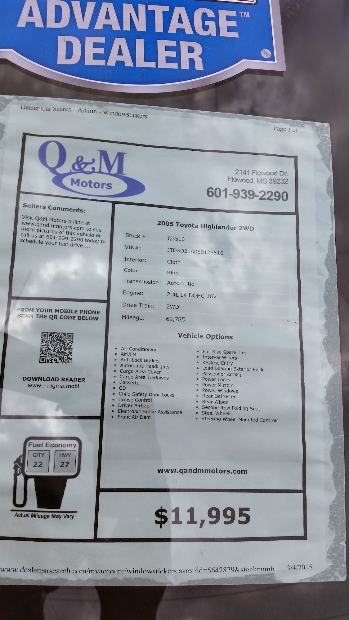 Welcome to Q&M Motors! Stop by our virtual showroom to check out all the vehicles we have available for purchase. You'll find detailed information along with plenty of photos, plus easy ways to get in touch with us if you need more details. Located at 2141 Flowood Dr., give us a call on 601-939-2290, or visit our website for driving directions and hours of service. Customer satisfaction is our top priority - come experience it for yourself!
