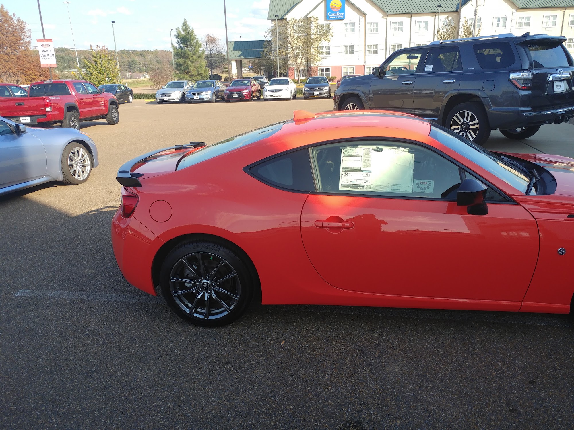 I would like to send a huge shout out to Colt Tabor, Salesman & Tristan Rawson, manager for going above and beyond to make my trade experience a 10/10. So if you are ever in Grenada stop by Kirk Toyota!! My experience was a 10/10!!!