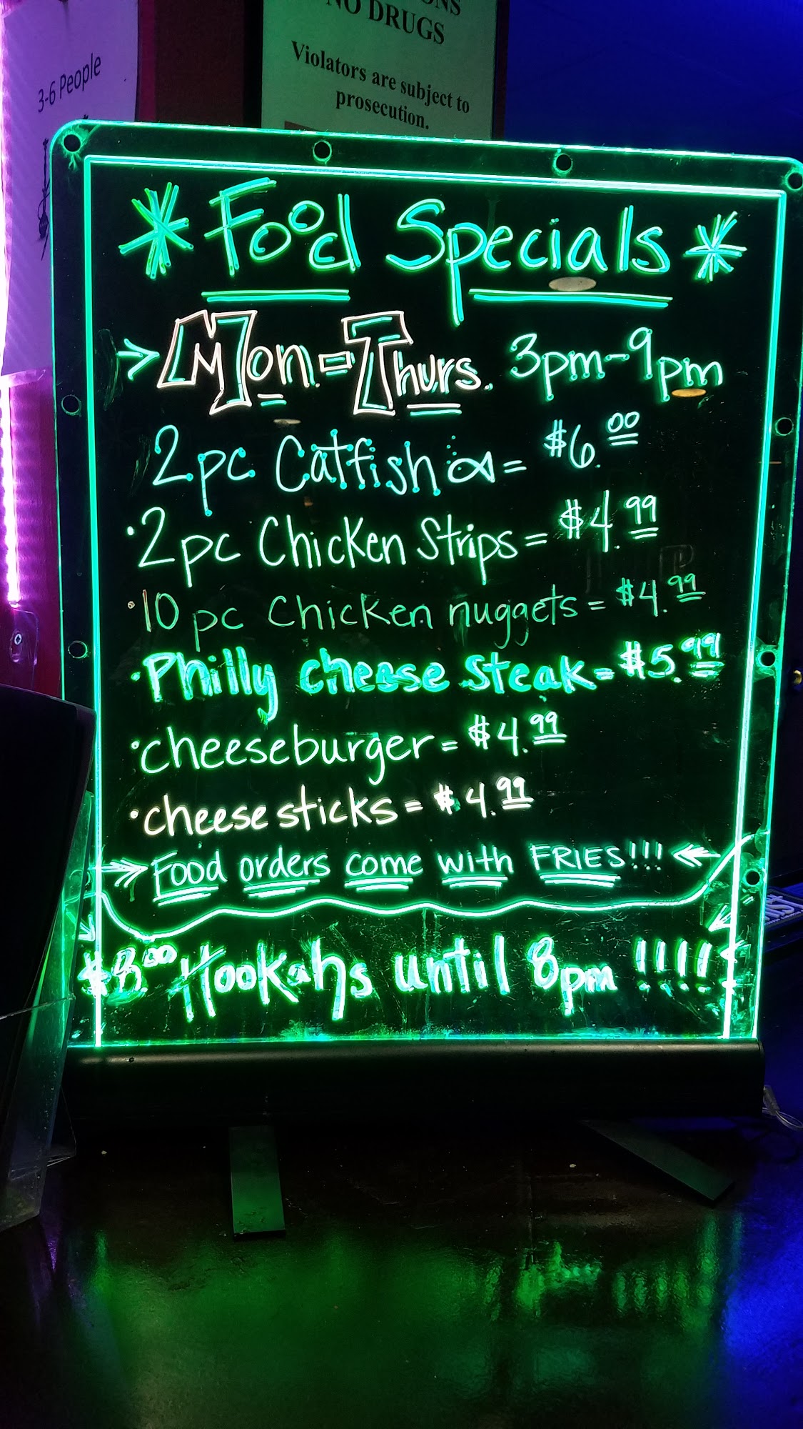 Drinks, food, and the atmosphere were good. The hookah could have been better, not a fan of plastic hoses, when hookah is part of your name. The hookah should be the best part of your business. It seemed like everything else was better.
