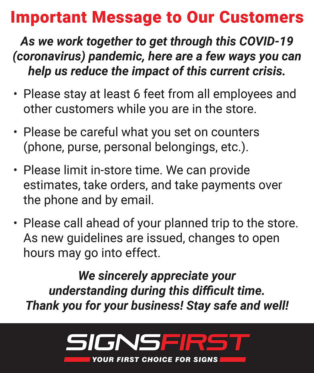 Great customer service at Signs First. Quality work, also.