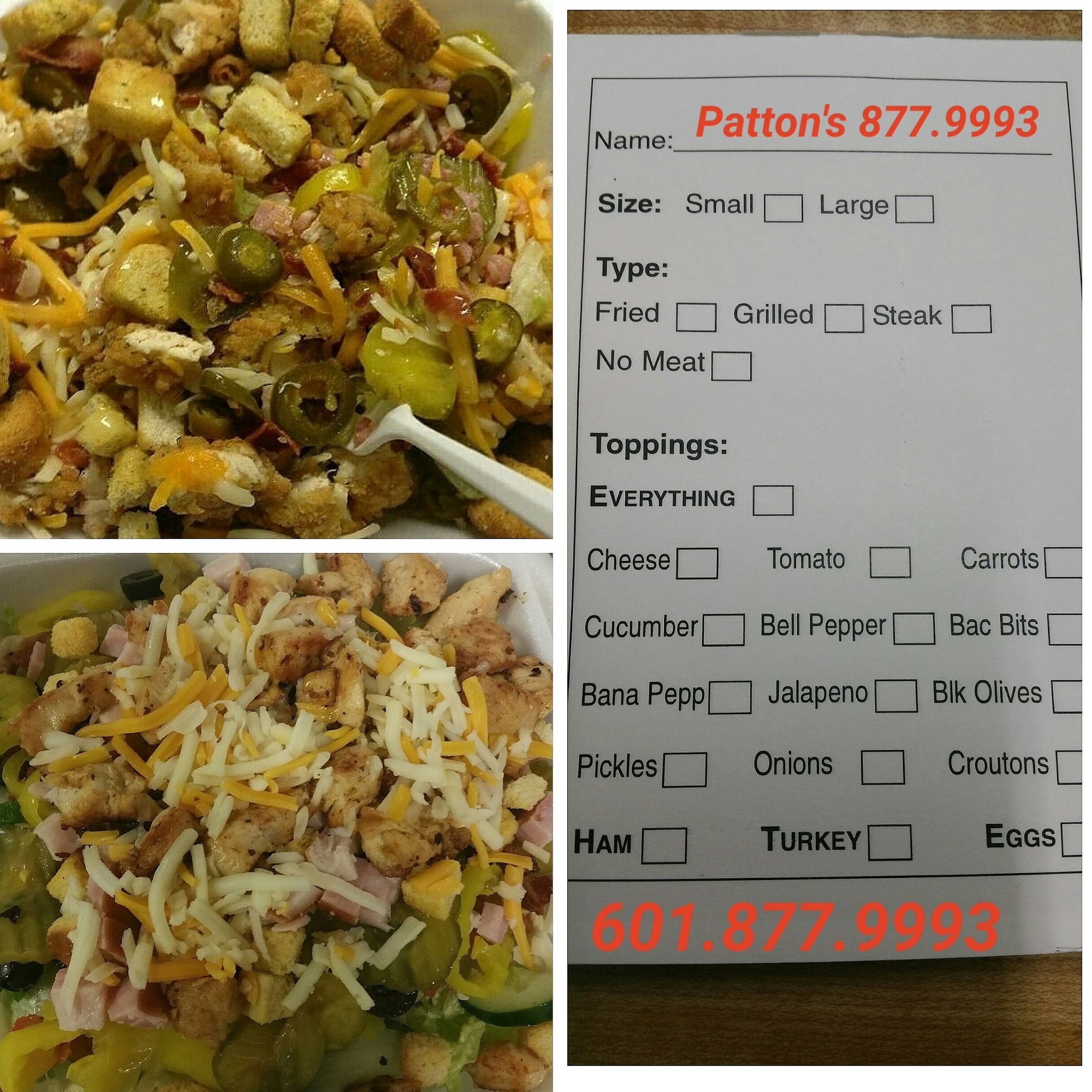 We have plenty of hot food options... burgers, fajitas, poboys, fresh catfish, hot wings, fresh salads, chicken tenders & more. Please stop by. We're located at back gate entrance to Alcorn State University. 601.877.9993