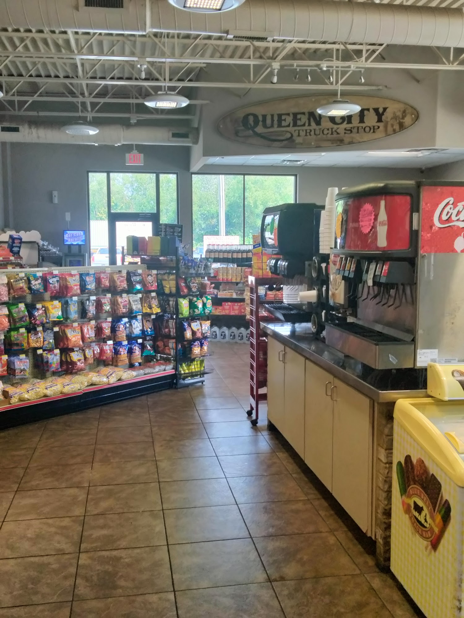 Paved truck parking. 3 free hours, free night if you eat at the diner! The staff is so friendly, the store is clean and stocked. Fresh fruit available. The diner is amazing, that's a separate review.