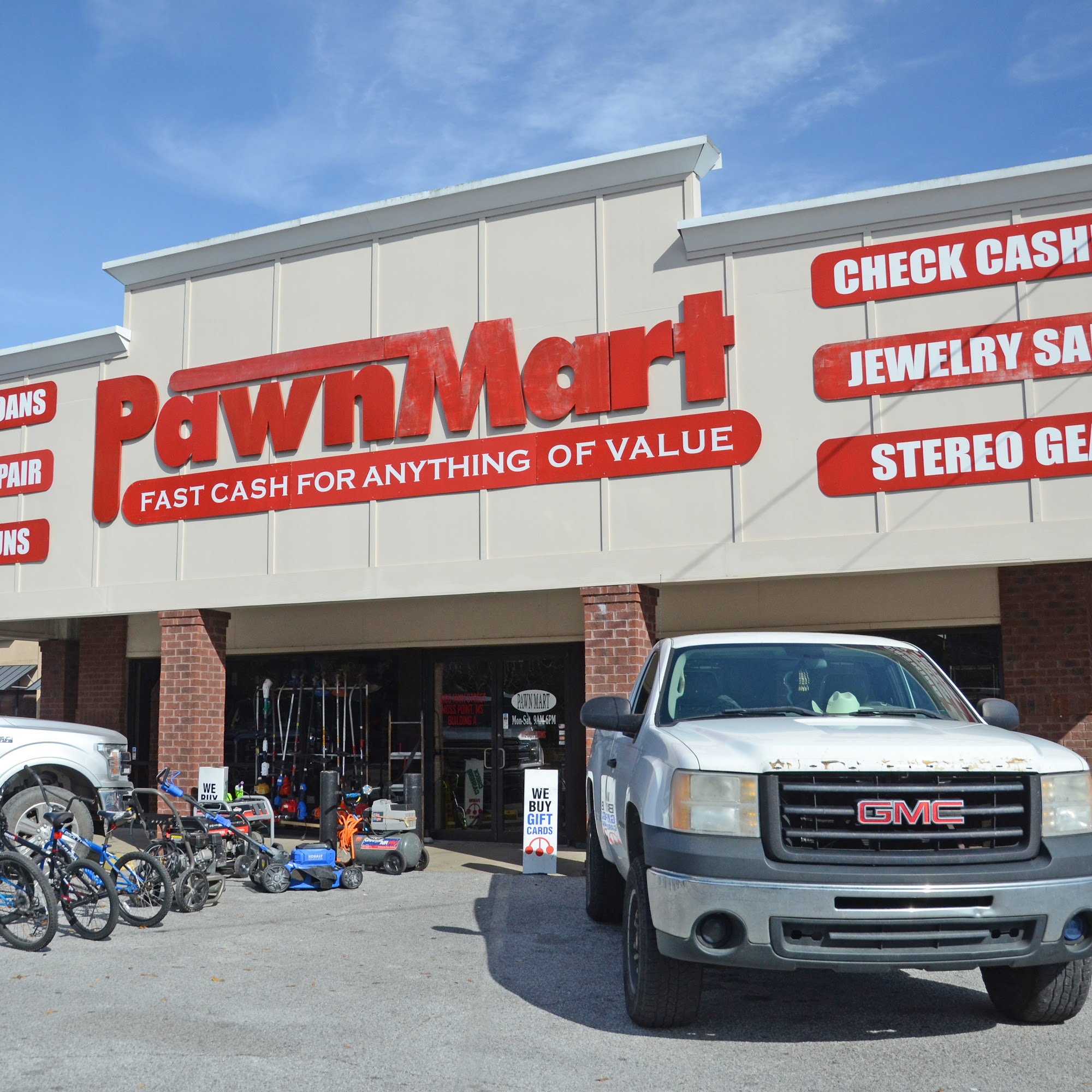 Pawn Mart Moss Point, a family-owned and locally-operated pawn shop in Moss Point, MS, offers a diverse selection of items including electronics, tools, appliances, luxury handbags, clothing, shoes, and jewelry. Founded on the commitment to providing excellent service and fair deals, we serve the varied needs of customers in Jackson County. Our expert team is ready to assist with fair appraisals, pawn transactions, title loans, check cashing, and more. Visit us today to explore great deals and turn your unwanted items into cash!