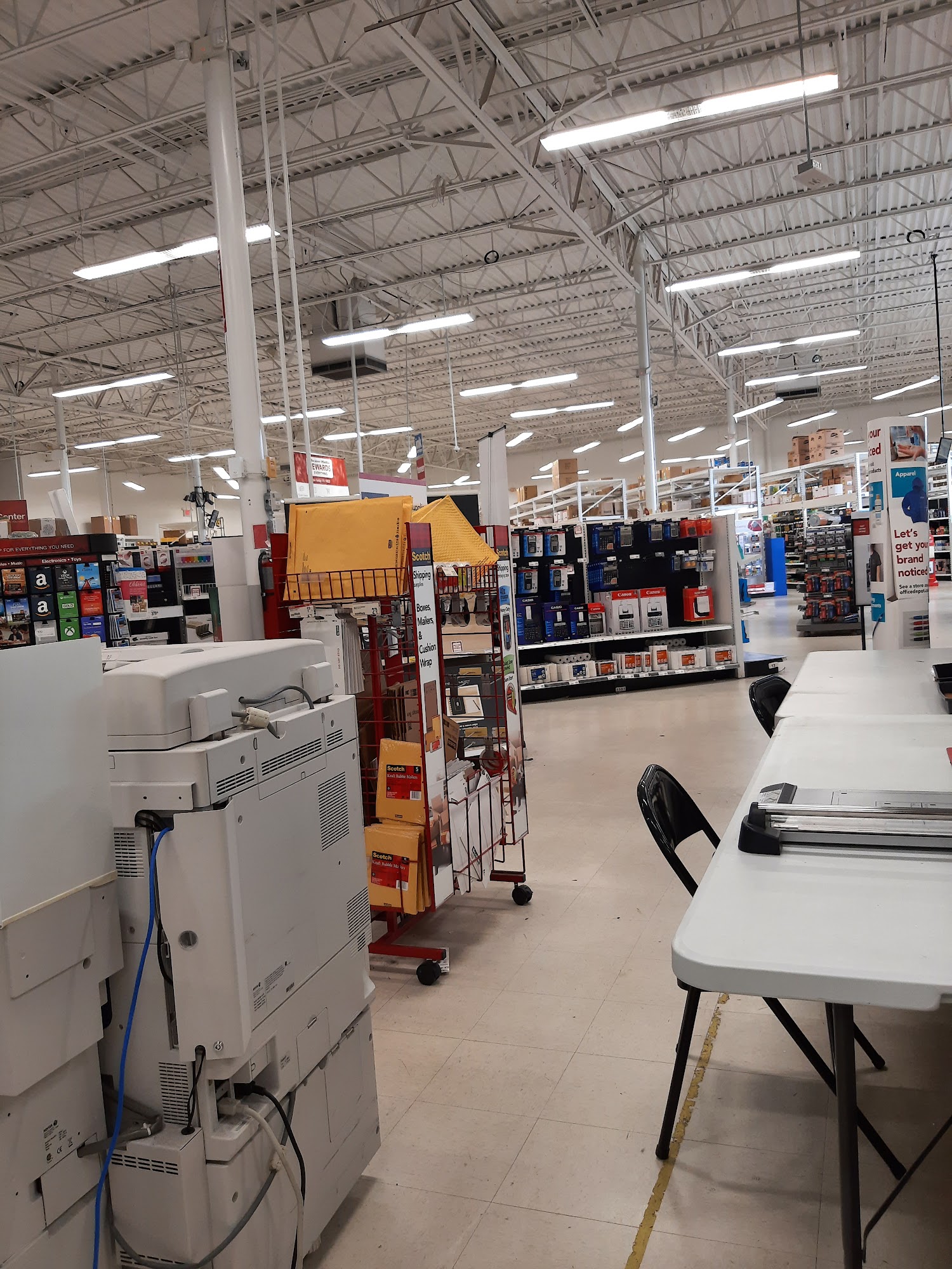 Office Depot is a convenient store that now offers curbside pickup for online and app orders. Customers can park in designated spots marked "Online Order Pickup" and tap the "I'm Curbside" button in the pickup email to receive their orders quickly, with staff bringing items out shortly after. The store caters to both business and home office needs, providing a variety of supplies such as paper, ink, furniture, technology, cleaning, and breakroom items. Additionally, they offer services like custom printing, shipping, and tech support, with helpful staff available to assist customers. Many reviews praise the helpful and professional staff, highlighting positive experiences with employees who assist with printing, office setup, and product selection. Customers appreciate the store's clean environment and the availability of hard-to-find supplies, which are often needed immediately rather than ordered online. Some mention the lower prices and same-day pickup for items like laser printers, making the store a reliable choice. However, there are some frustrations with the rewards program, which requires online registration and has security concerns with the website. Despite this, customers find value in the store’s offerings, especially when in a hurry or needing specific items quickly. Overall, Office Depot is seen as a helpful, well-stocked store that provides good service and essential office supplies for both business and home use.