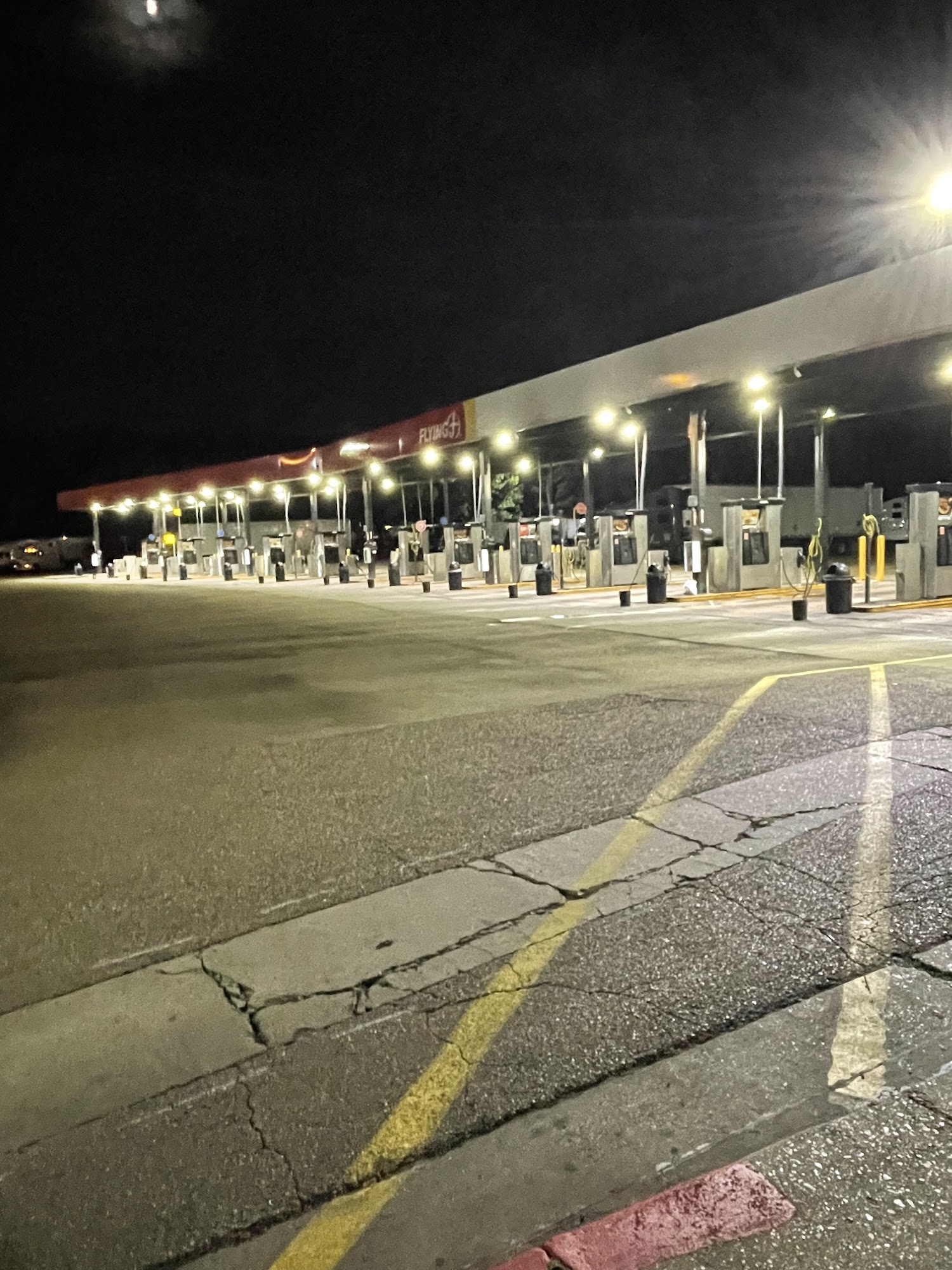 Pilot Flying J is a place that has everything, including a driver's lounge, game room, laundry, and showers. The showers are generally good and clean, with a short waiting time, though amenities can be lacking. The laundry is great but has limited machines. The attached Denny's offers good variety, quality, and affordable meals, with some late-night service issues. Staff friendliness varies; some attendants are super friendly and diligent, while cashiers can be a little rude. The location seems understaffed on weekends and needs attention, with issues like restroom stalls that do not lock.