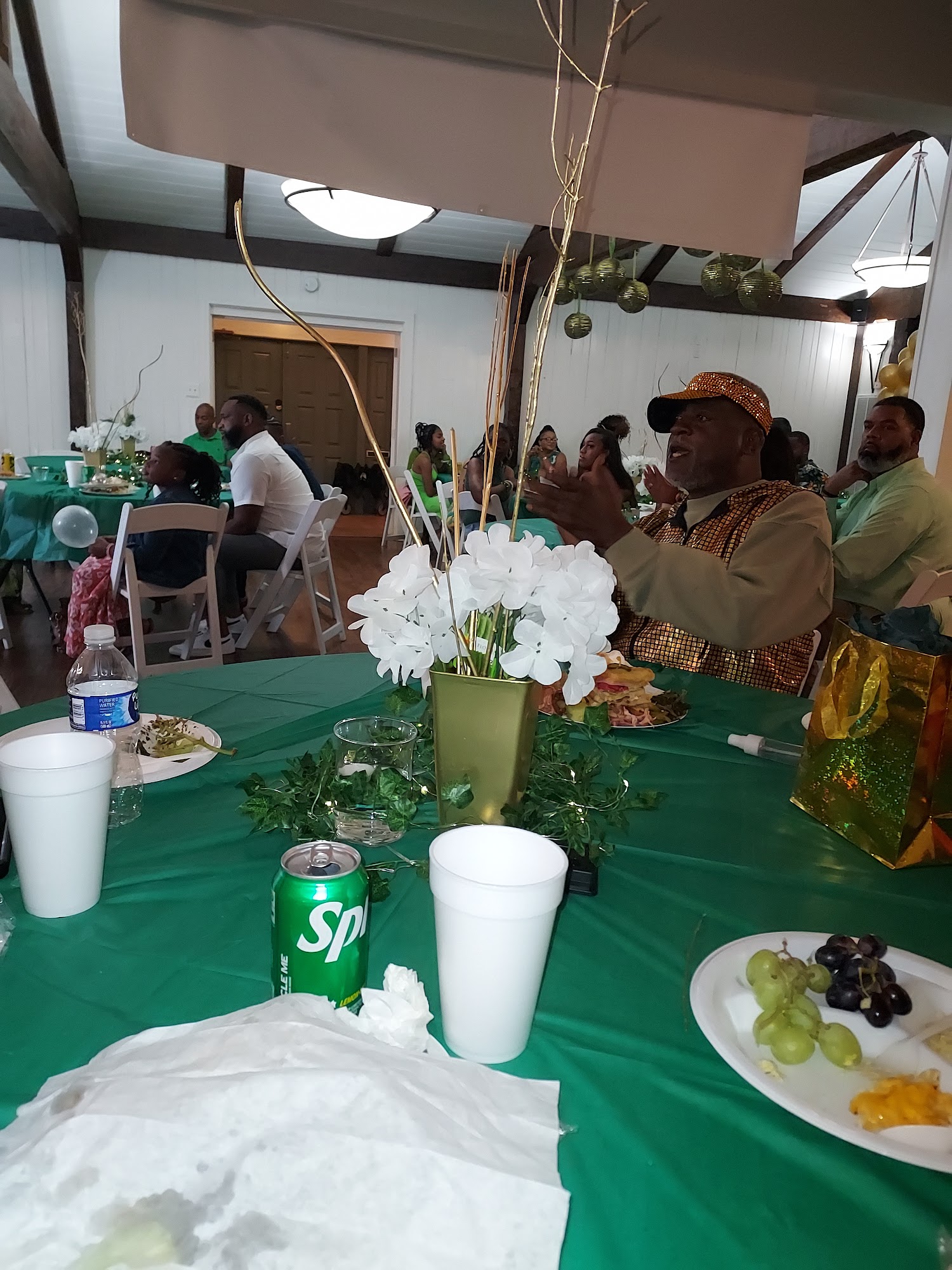 Spring Lake Venue is a beautiful location suitable for weddings, receptions, and family reunions. It offers a large event space that can comfortably hold up to 120 people, with a spacious back patio and a pretty view of the lake, especially at sunset. The venue features a large gathering room, a smaller dining area, and a kitchen. While the bridal and groom rooms are small, the overall setting and neighborhood are peaceful and charming.