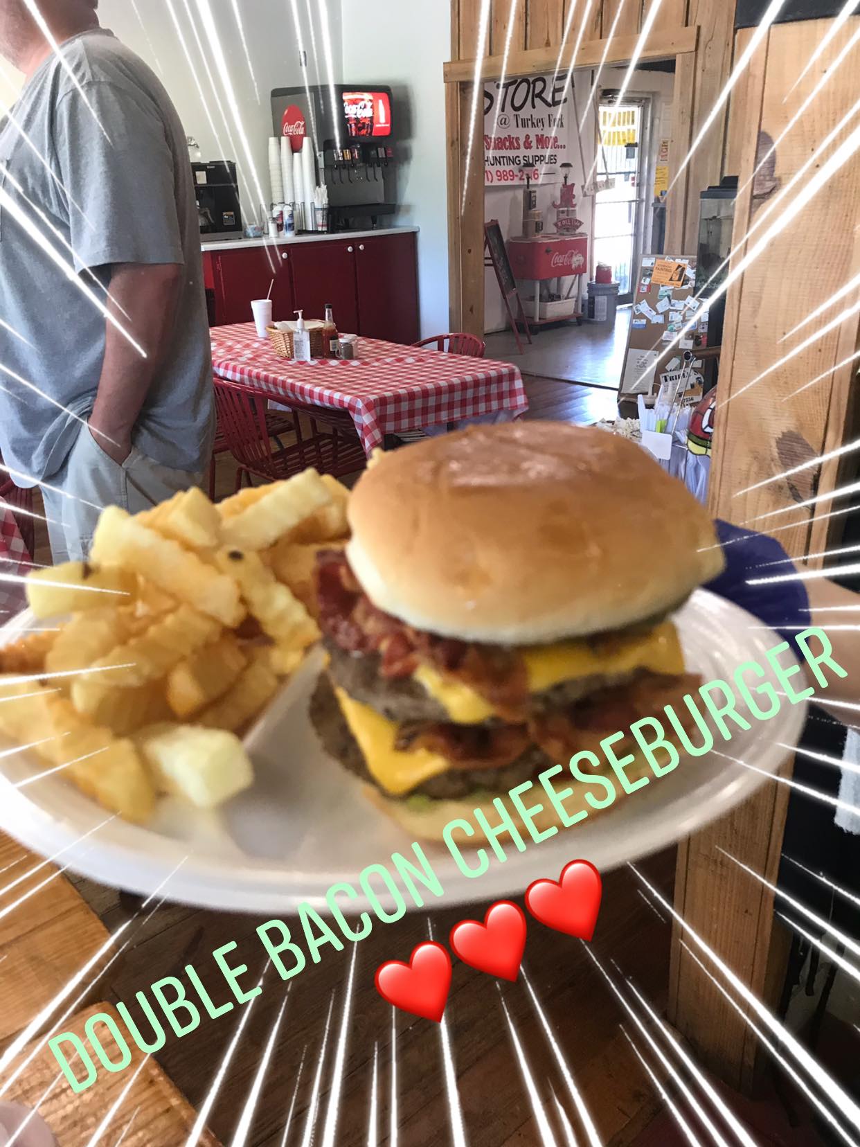 Friendly staff and a great hamburger. Closest bait shop to the lake. Live bait available also.