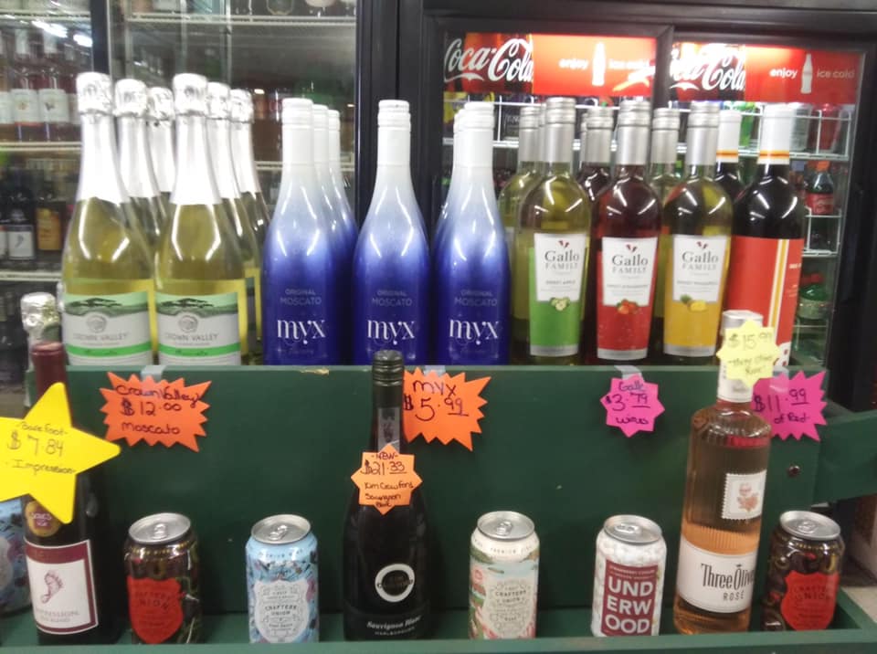 They offer multiple shelves of beverages. They carry a wide variety of Missouri made items including our Myrtle's Distilled Spirits. Great staff, very friendly. Drive up window or walk in.