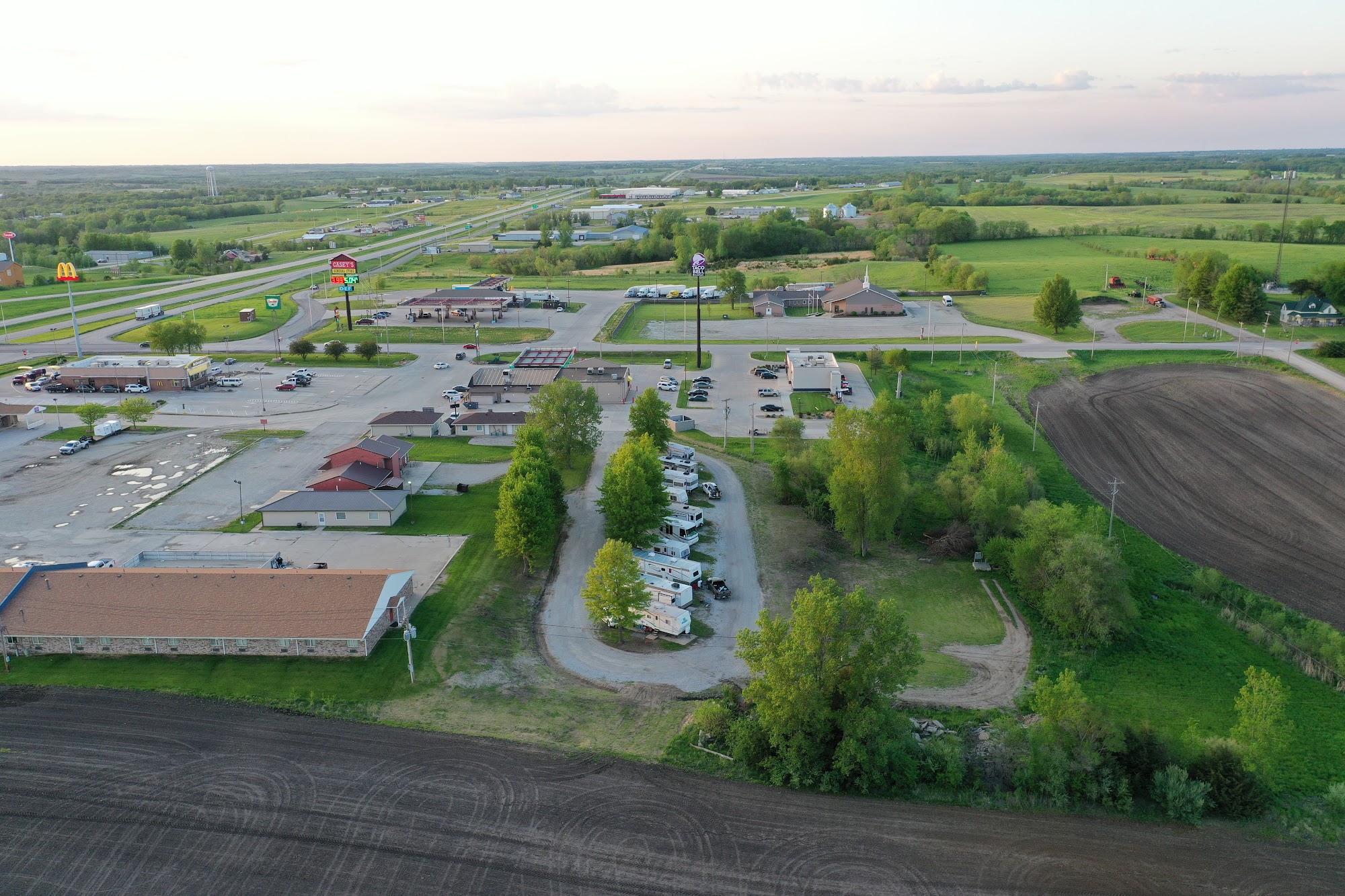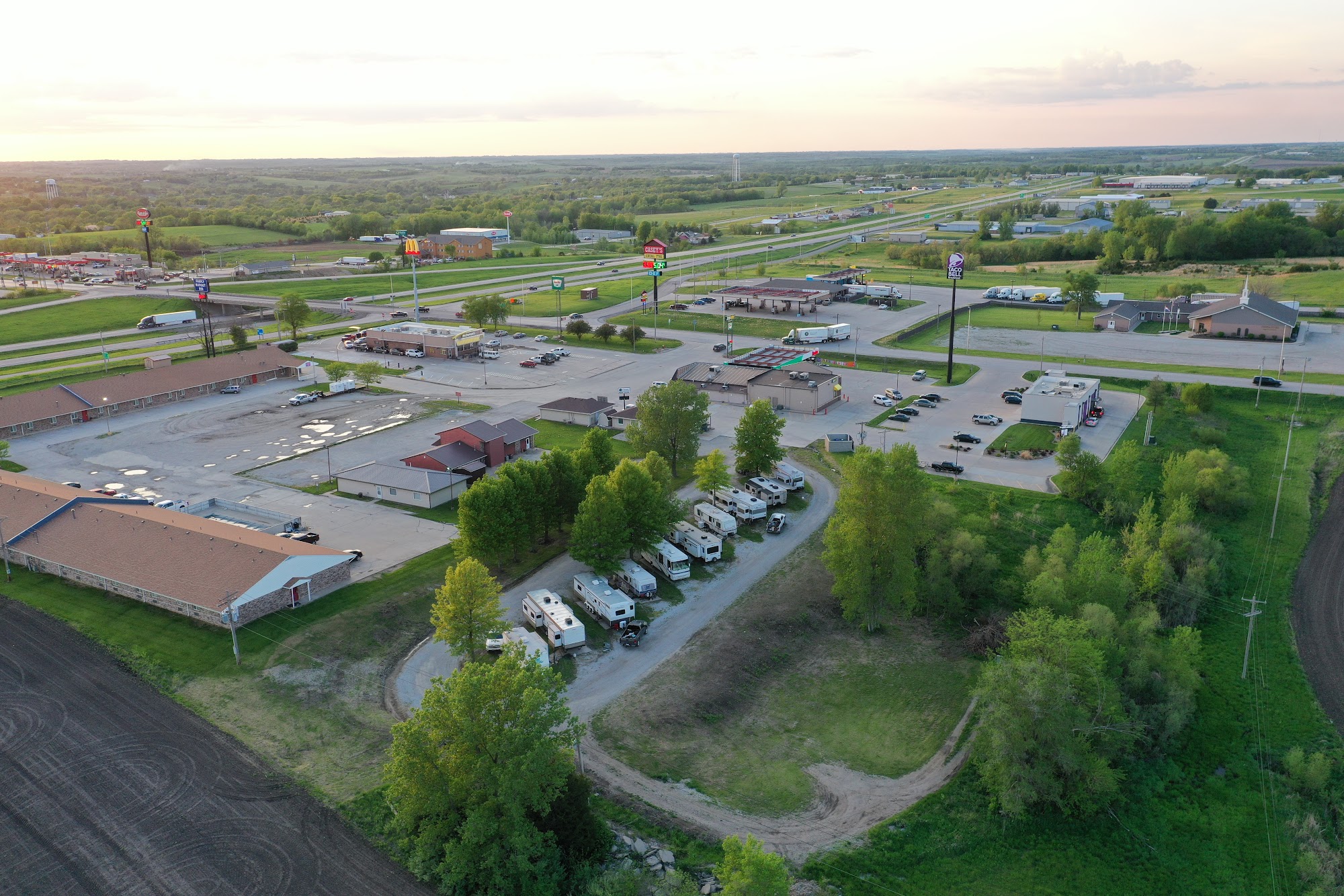 Quail Ridge Campground is located right off of I-35, halfway between Kansas City, MO & Des Moines IA. It's located at the intersection of Hwy. 136 & I-35. Quail Ridge offers 10 Full-Hookup Pull-Through sites and 3 Full-Hookup Back-In sites. There is also a dump site on the premises. Within close walking distance is Fast Food & Fuel. Walmart is also located less than a mile away.