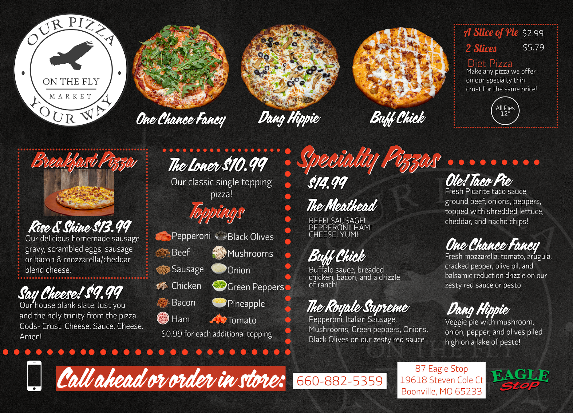 We stop here when we are traveling. They serve pizza, which is pretty good. Their fuel prices are usually the cheapest.